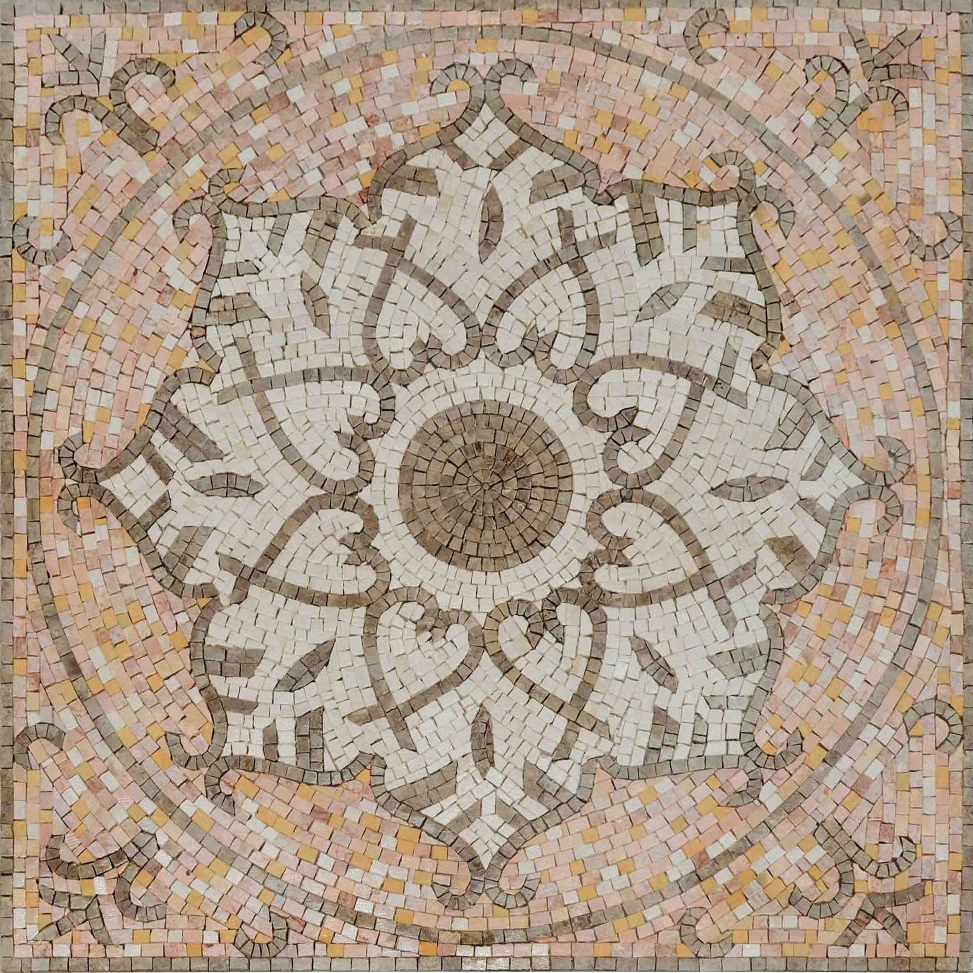 Each mosaic tile is thoughtfully arranged to form a harmonious composition that reflects both elegance and artistic flair. Our use of a light color palette enhances the delicate nature of the design, allowing it to seamlessly blend with a variety of interior styles, from modern to traditional.