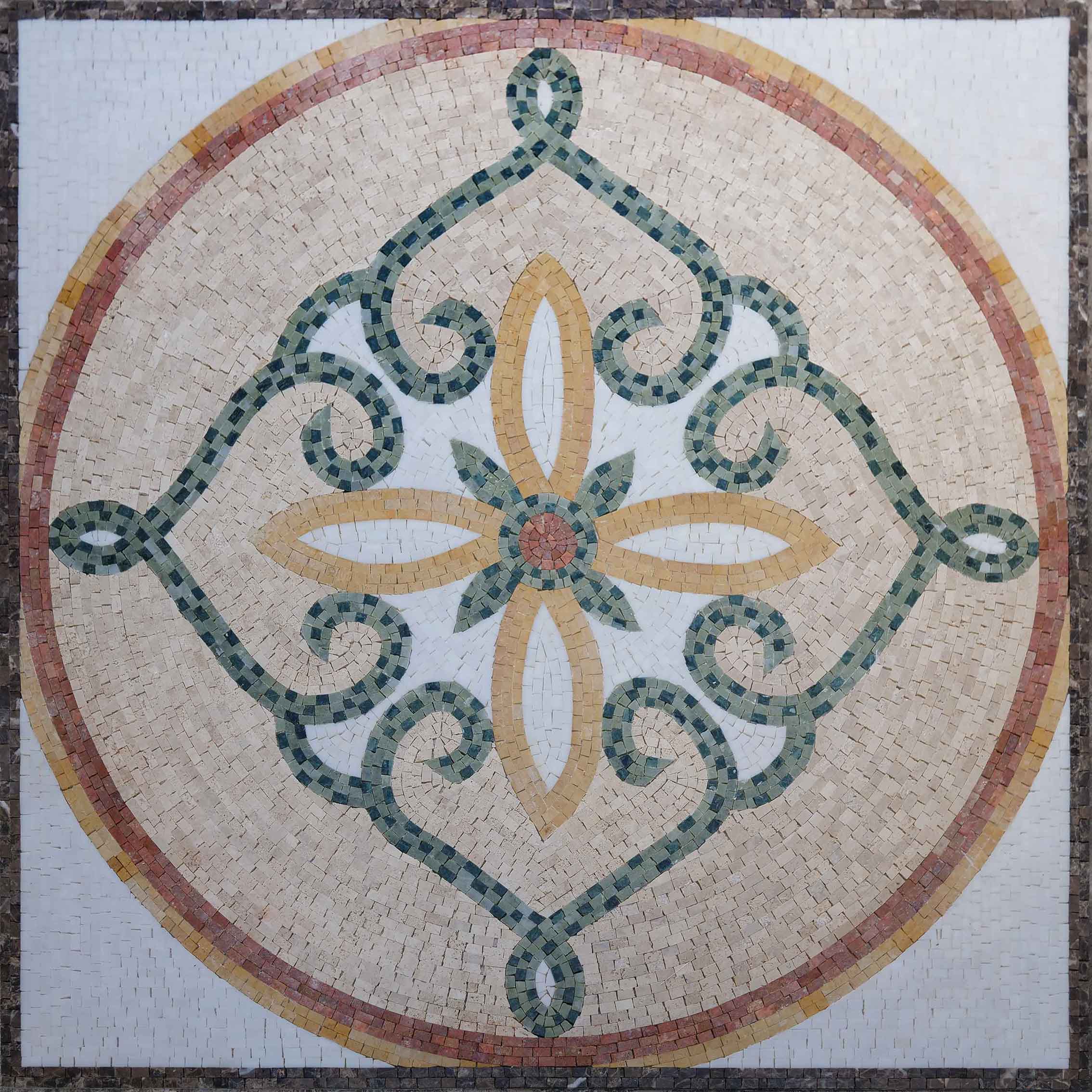Crafted with meticulous attention to detail, the Azalea mosaic showcases a captivating design featuring heart-shaped vines that gracefully intertwine, symbolizing love and growth. At its center, a marvelous yellow flower blooms, radiating warmth and optimism. The intricate patterns and textures come together to form a harmonious visual experience that invites contemplation and joy.
