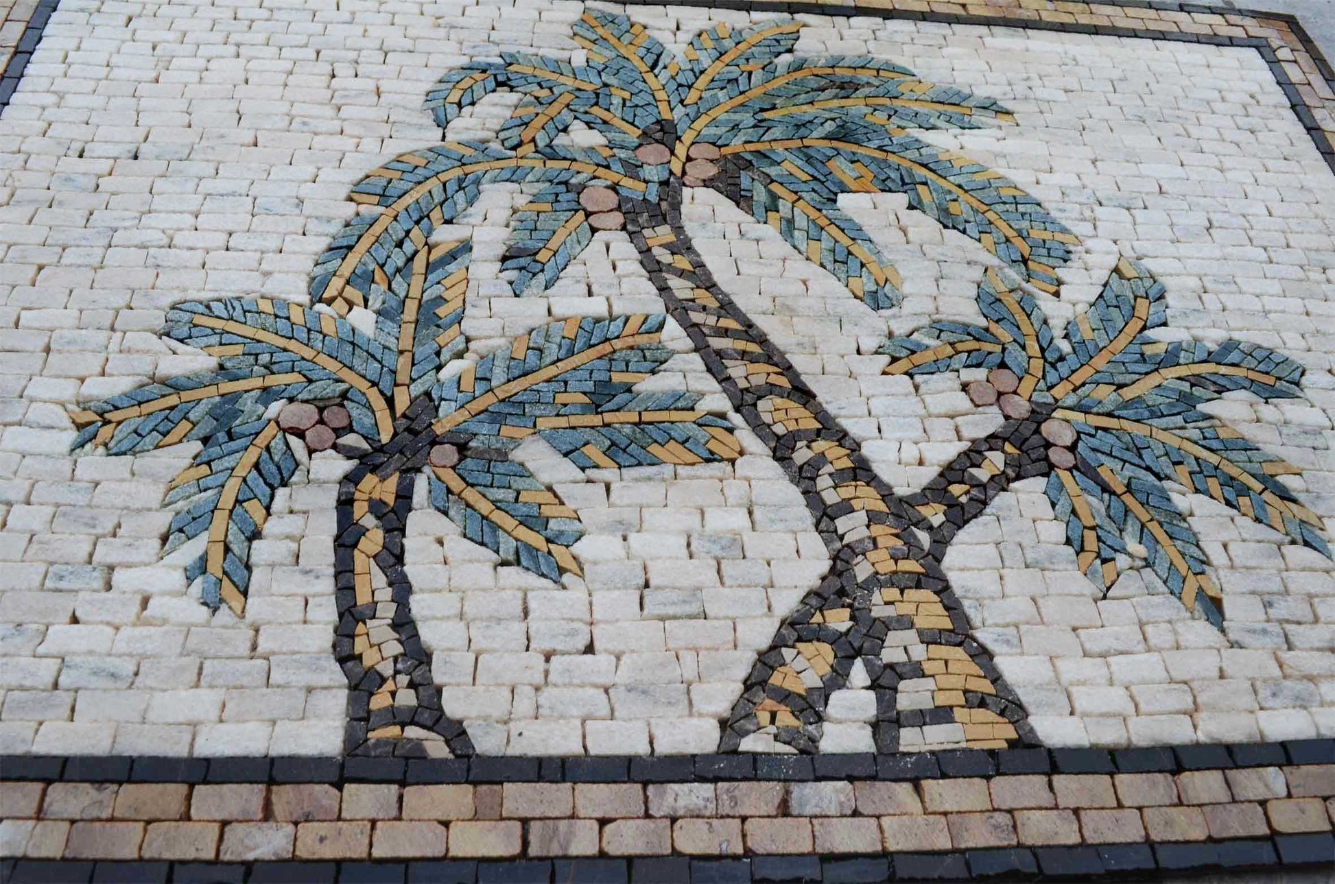 Elevate your decor style and immerse yourself in the tranquil vibes that palm trees represent. Ideal for tropical-themed designs or modern interiors, this mosaic offers timeless beauty and charm. Make "Mosaic Designs - The Palms" a part of your home or office, and let it inspire relaxation and creativity, invoking the splendor of nature all year round. Rediscover the joy of living surrounded by art, and let your walls tell a story of tranquility and style with this stunning mosaic masterpiece.