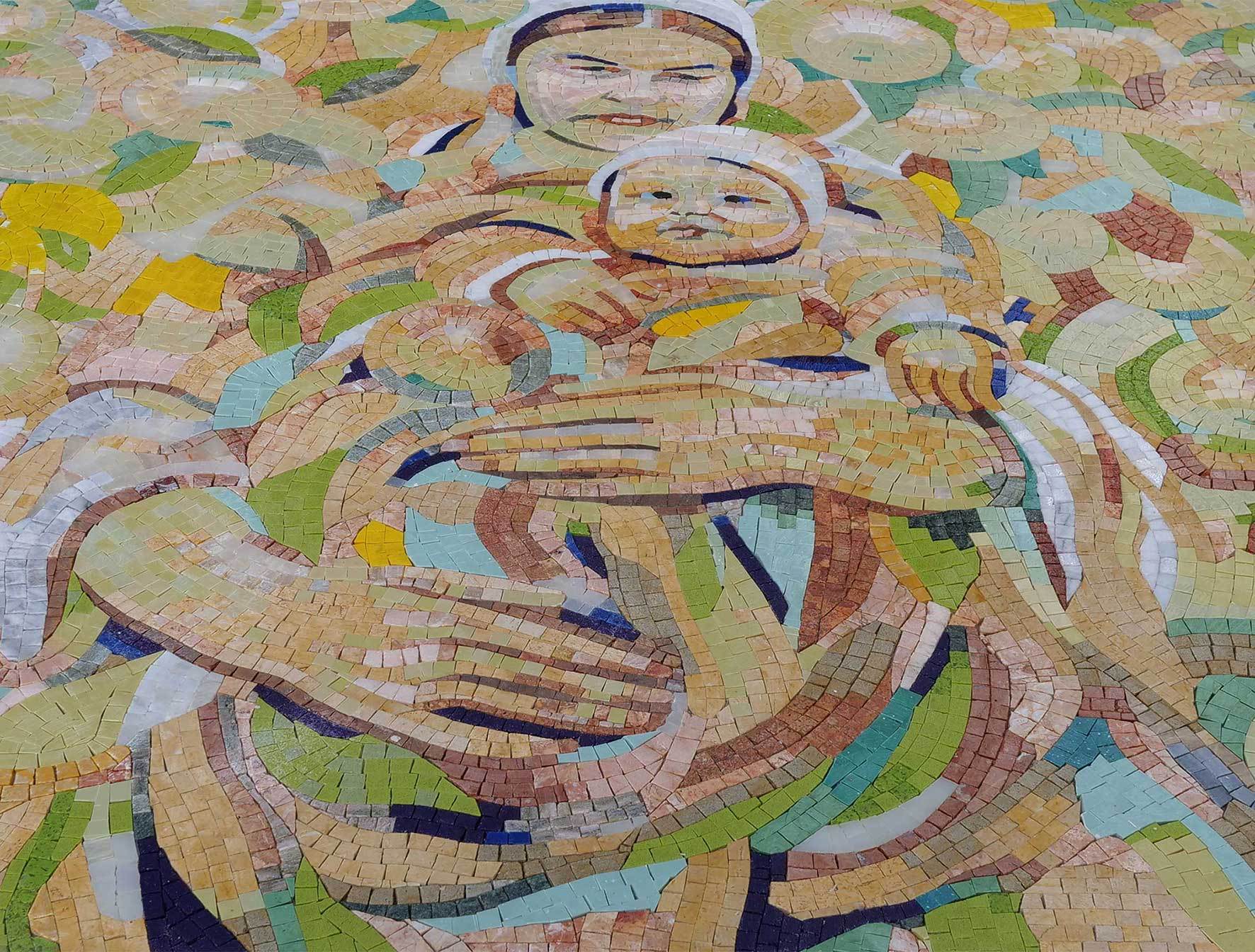 Perfectly suited for both traditional and modern interiors, this mosaic piece is sure to become a cherished focal point in your home. Its durable marble construction ensures that it will be a lasting treasure for years to come. Elevate your home aesthetic with this stunning representation of motherly love and artistry, and celebrate the beauty of family with this one-of-a-kind mosaic reproduction.