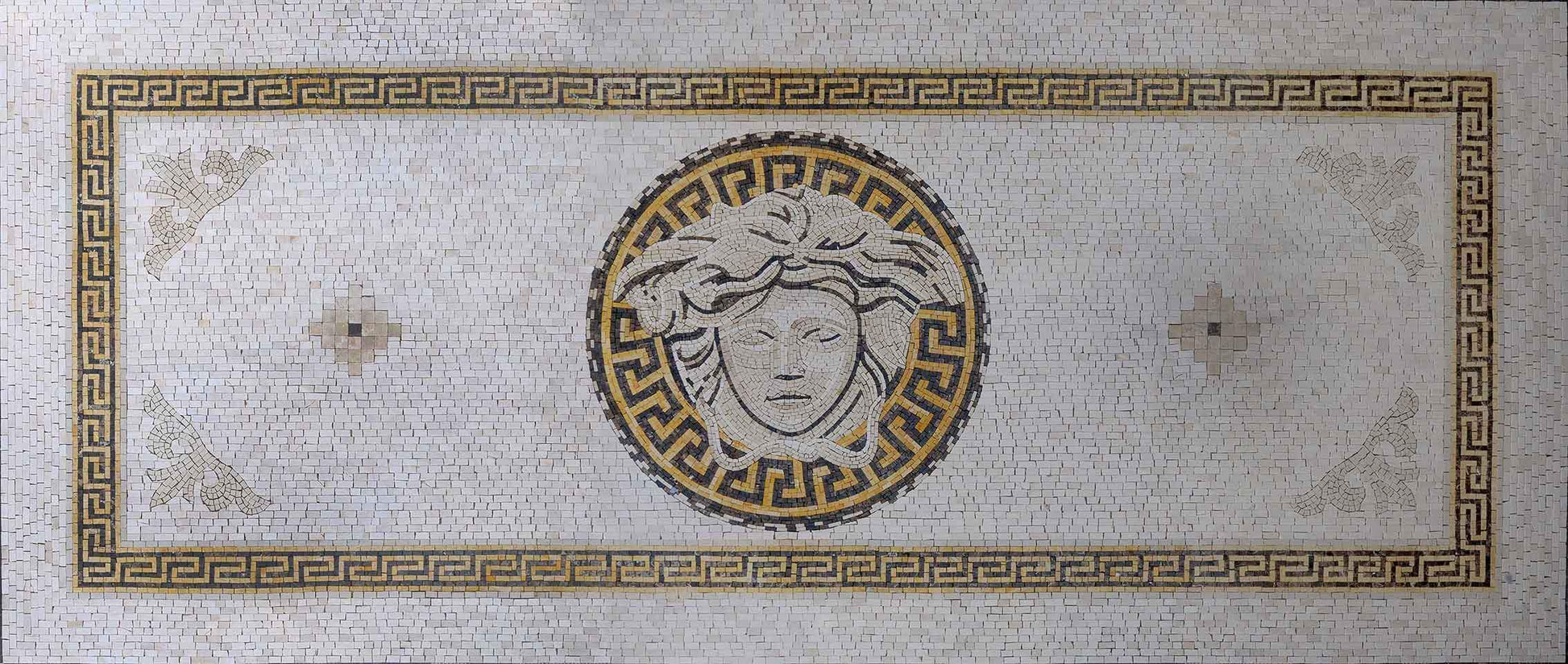 Indulge in the refined beauty of the Marble Mosaic Logo - Versace Carpet and experience the allure of high fashion brought into your everyday life. Elevate your home decor to new heights with this luxurious addition that speaks to your sophisticated taste and love for exquisite craftsmanship.