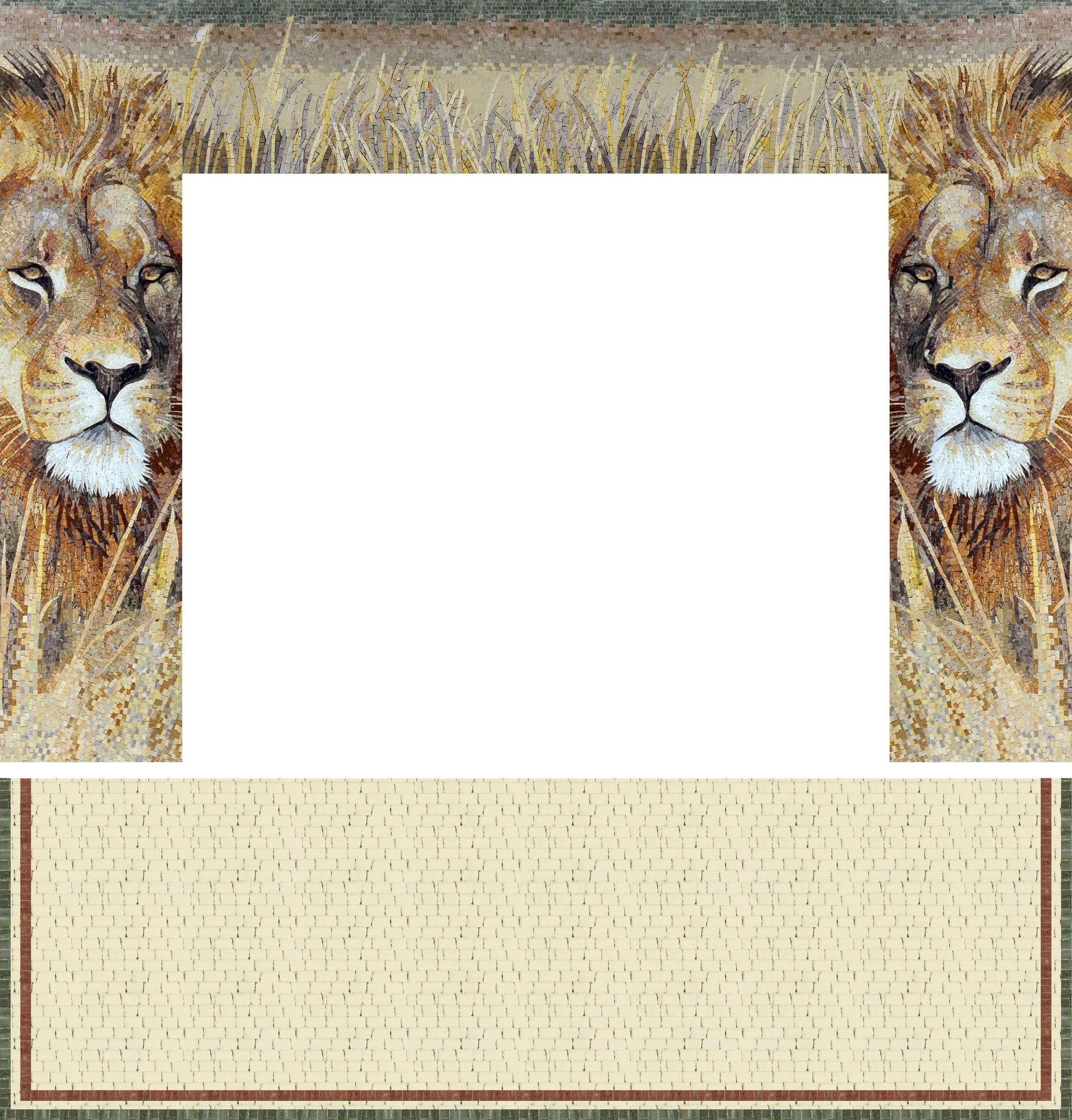 In addition to its aesthetic appeal, the "Regal Lion - Fireplace Mosaic Border" serves a practical purpose by providing a defined area around your fireplace, creating a cohesive look while helping to protect surrounding surfaces. It’s the perfect finishing touch that speaks to your refined taste and appreciation for the finer things in life.