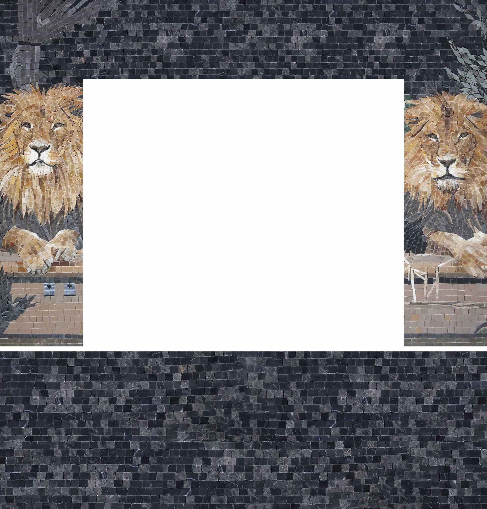 Whether you're looking to enhance your existing decor or create a bold new statement, the Lion Lair Mosaic Fireplace is the perfect choice. Its contemporary aesthetic blends seamlessly with a variety of interior styles, from rustic to modern, making it a versatile addition to any home.