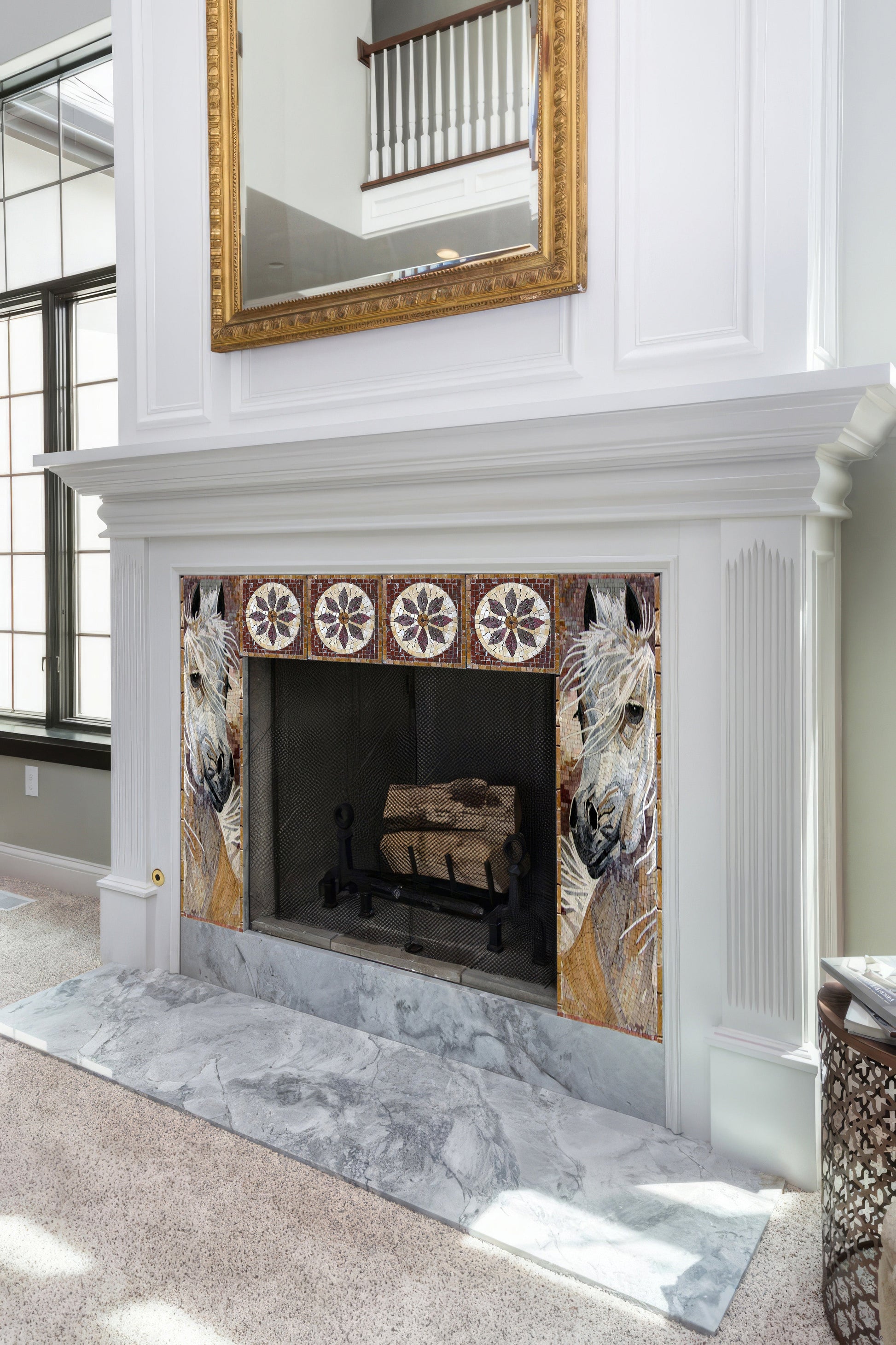 Elevate your home with the incredible artistry of the White Horse Art - Tile Mosaic Fireplace. Let the spirit of the majestic horses inspire warmth and beauty in your living area, making each gathering around the fireplace a memorable experience. Embrace a unique piece of functional art that speaks to your taste and love for distinctive design. Transform your fireplace today and enjoy the luxurious ambiance provided by this exquisite mosaic fireplace.