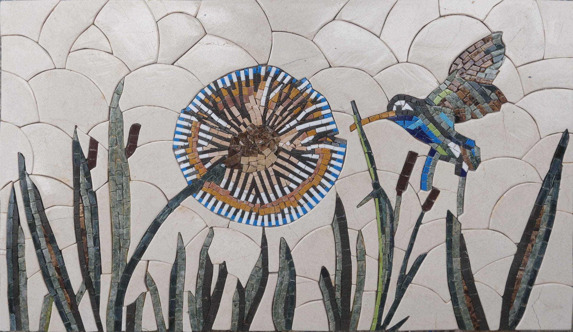 Transform your space with the enchanting presence of this breathtaking bird mosaic, and let the blue hummingbird inspire you to appreciate the wonders of nature every day.