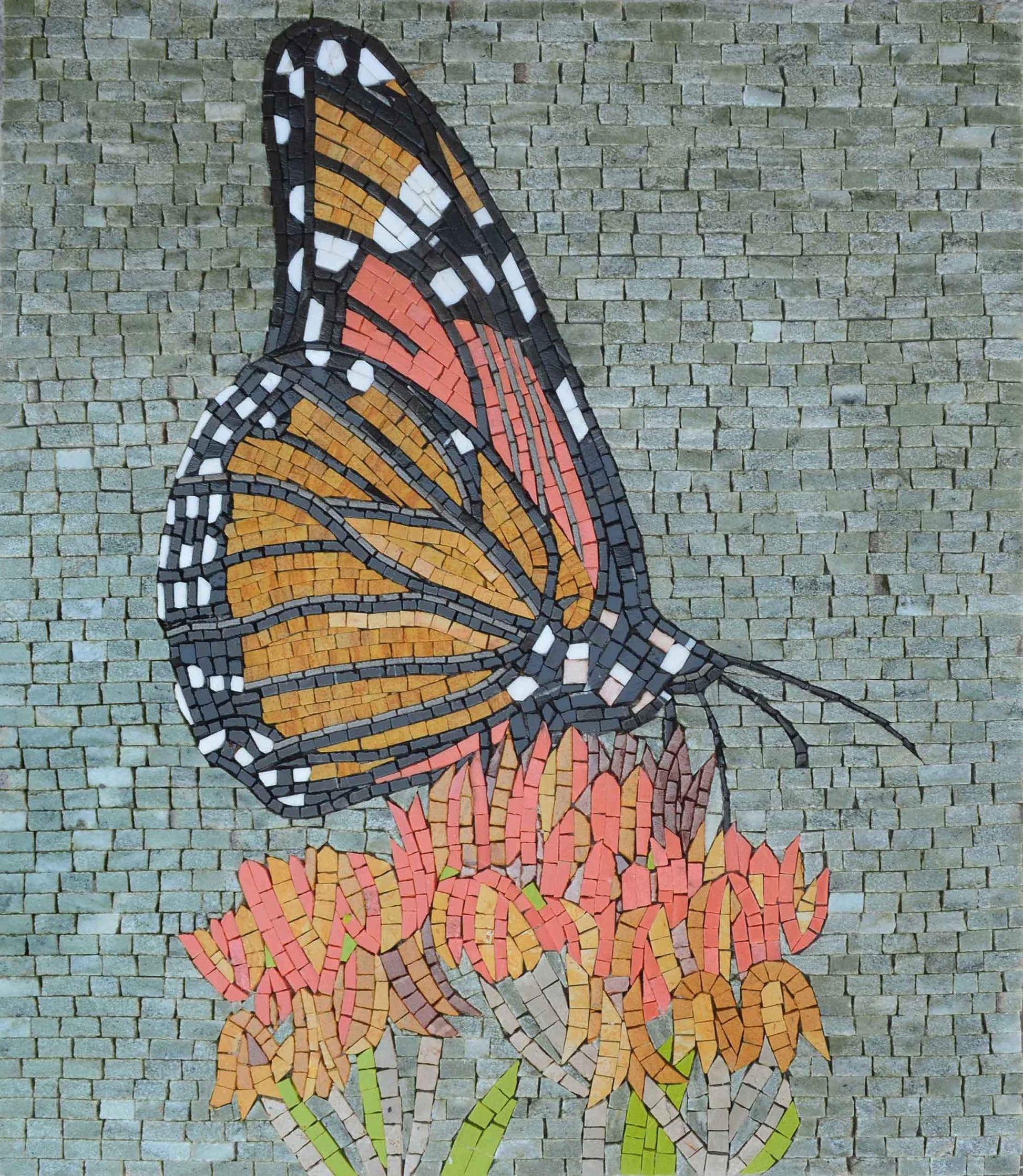 Perfect as a gift or as a statement piece for your own home, the Butterfly Mural - Mosaic Art combines beauty and artistry in a way that resonates with nature lovers and art enthusiasts alike. Make your space bloom with creativity and charm by adding this unique piece to your collection today.