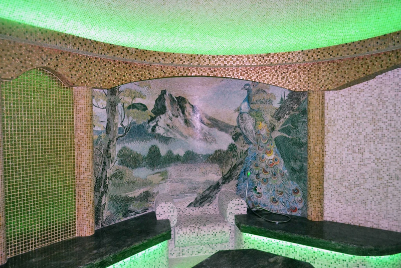 Crafted with meticulous attention to detail, each piece of this mosaic is made from hand-cut materials, ensuring that every color and texture contributes to a harmonious whole. The spirited hues of the landscape meld seamlessly with the iridescent feathers of the peafowl, creating a visual feast that mesmerizes and inspires. The dynamic interplay of colors is not only a feast for the eyes but also a reminder of nature's boundless beauty and serenity.