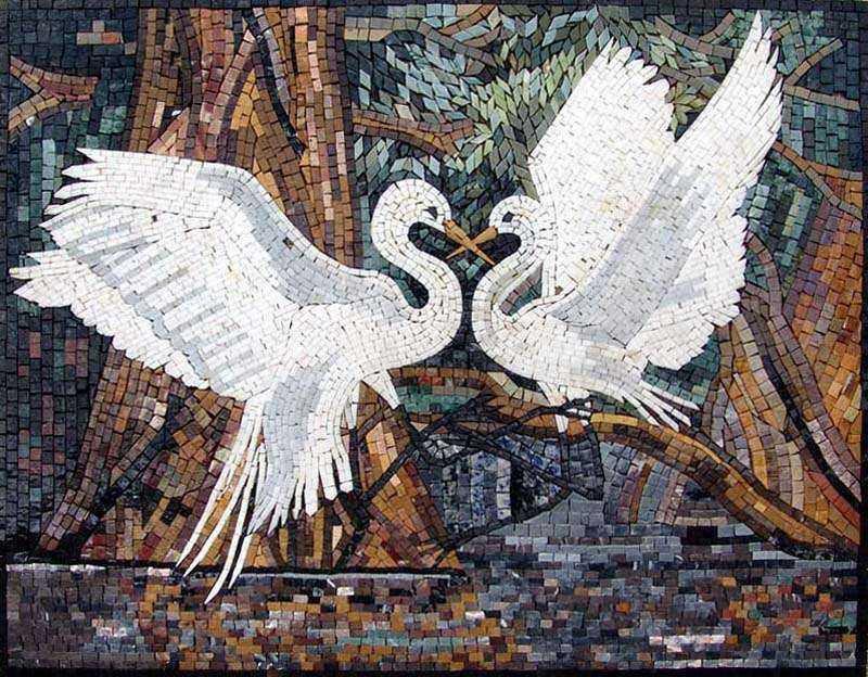 The Romantic Herons mosaic is not just a decoration; it’s a statement of artistry that elevates the ambiance of any space. Whether you choose to display it indoors, where it can infuse your home with warmth and elegance, or outdoors, where it can harmonize with the beauty of nature, this artwork is versatile enough to enhance any environment.