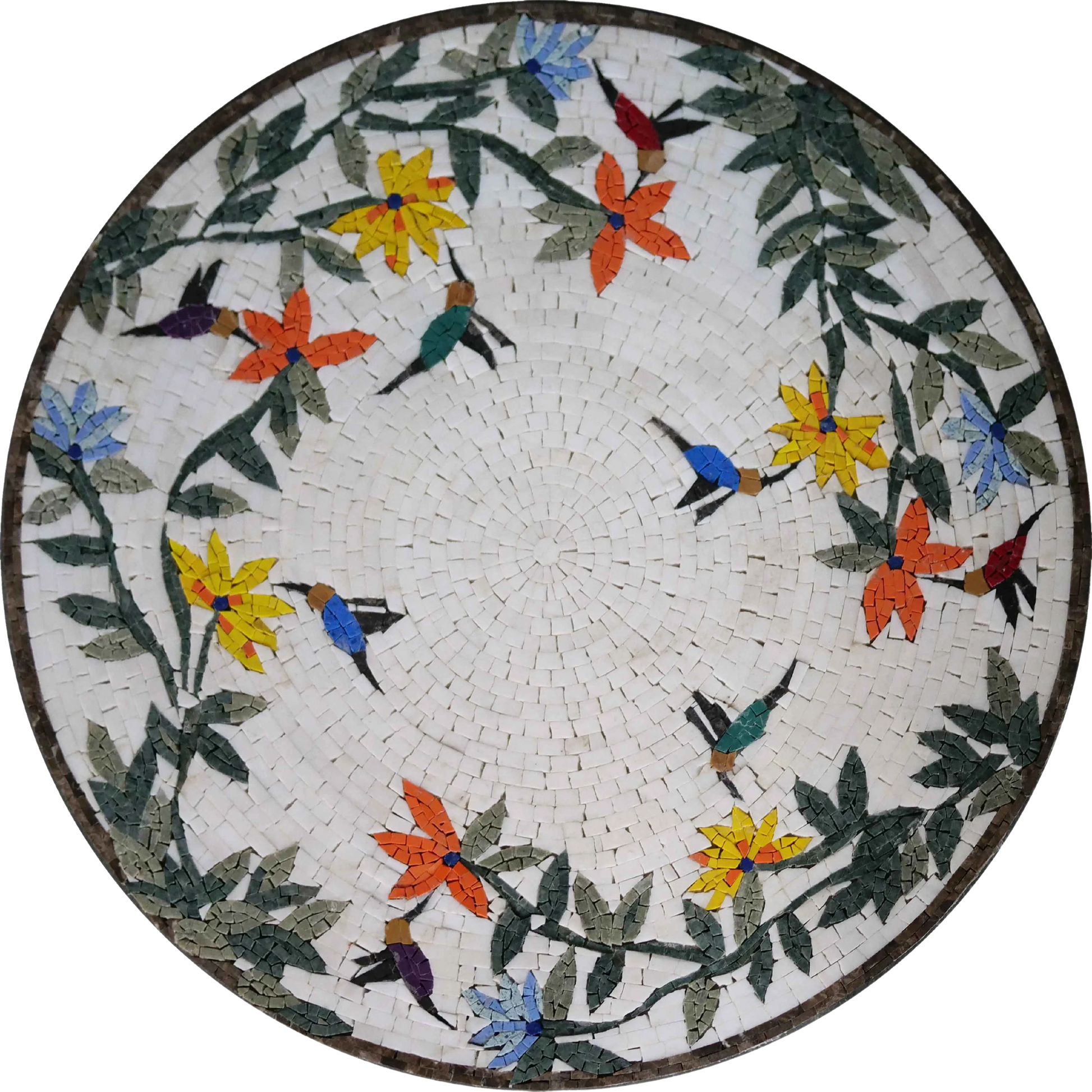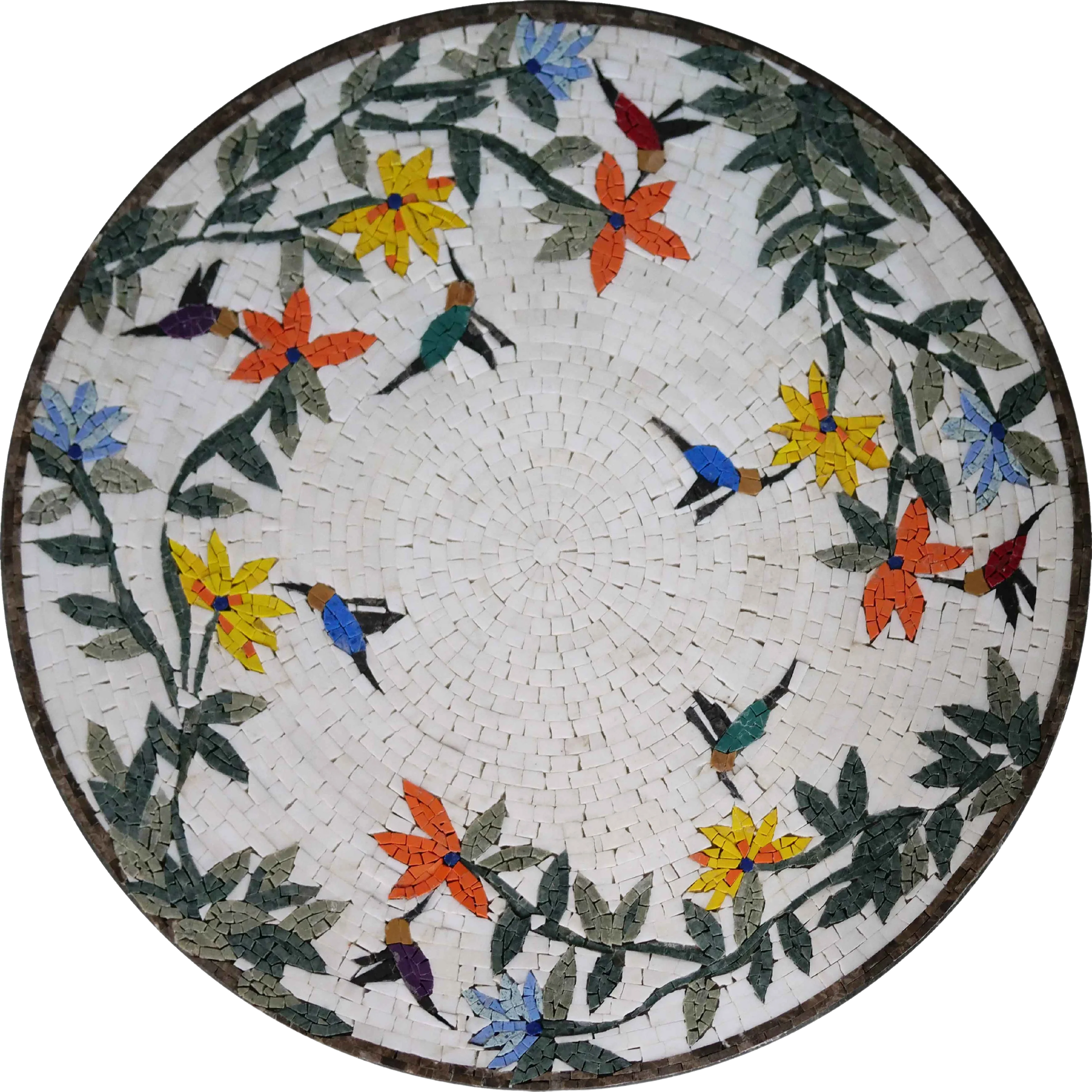 Perfect as a decorative accent or a thoughtful gift for art lovers, this medallion holds the power to transform any setting into a vibrant oasis. Bring home the charm of hummingbirds and the beauty of handcrafted artistry with our "Mosaic Medallion - Colorful Hummingbirds." Embrace the art of mosaic and let the colors of nature brighten your home décor today!