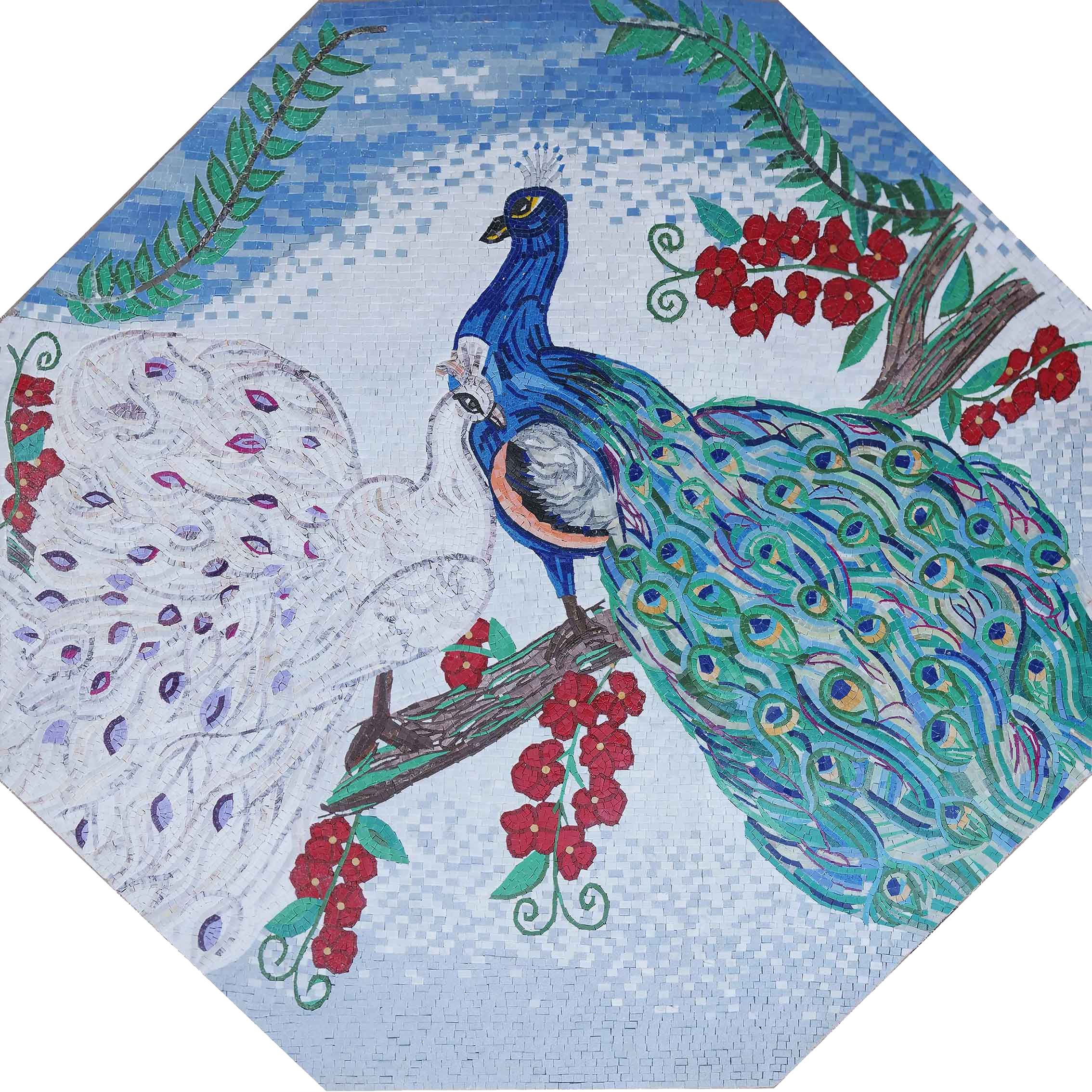 Rich in symbolism, the peacock tail has been revered in Greco-Roman mythology as a celestial representation of the stars, embodying beauty, pride, and immortality. Our talented mosaic artists have meticulously crafted this artwork, ensuring that every detail reflects the intricate patterns and vivid colors associated with these enchanting birds.