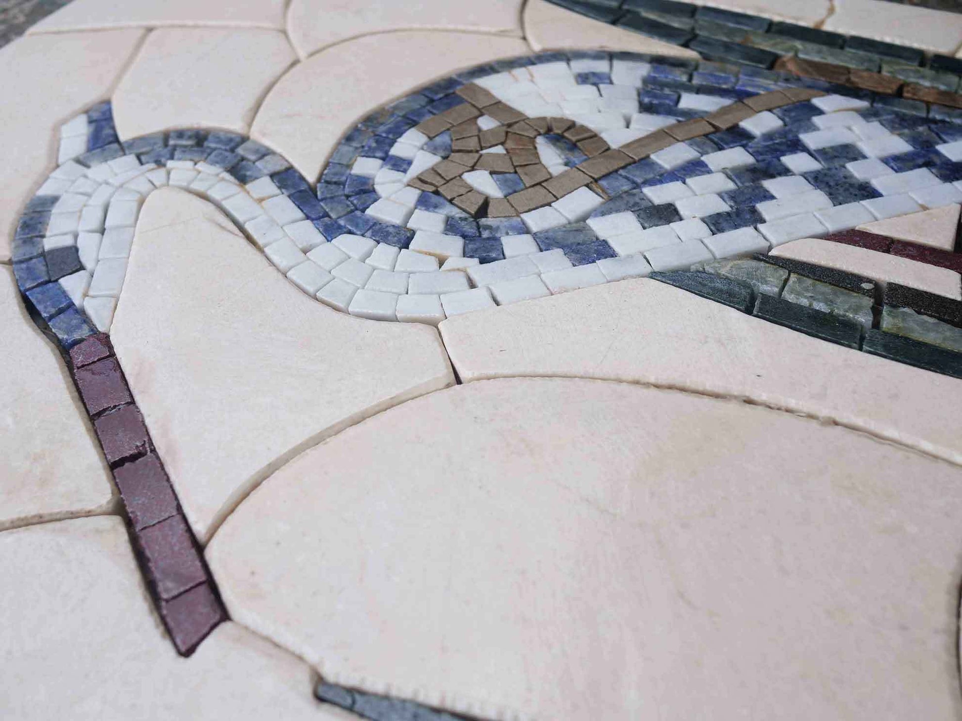 The use of high-quality marble not only ensures durability but also gives each piece a unique character, as no two mosaics are exactly alike. The subtle variations in color and texture bring depth to the artwork, allowing it to blend seamlessly with a variety of decor styles.