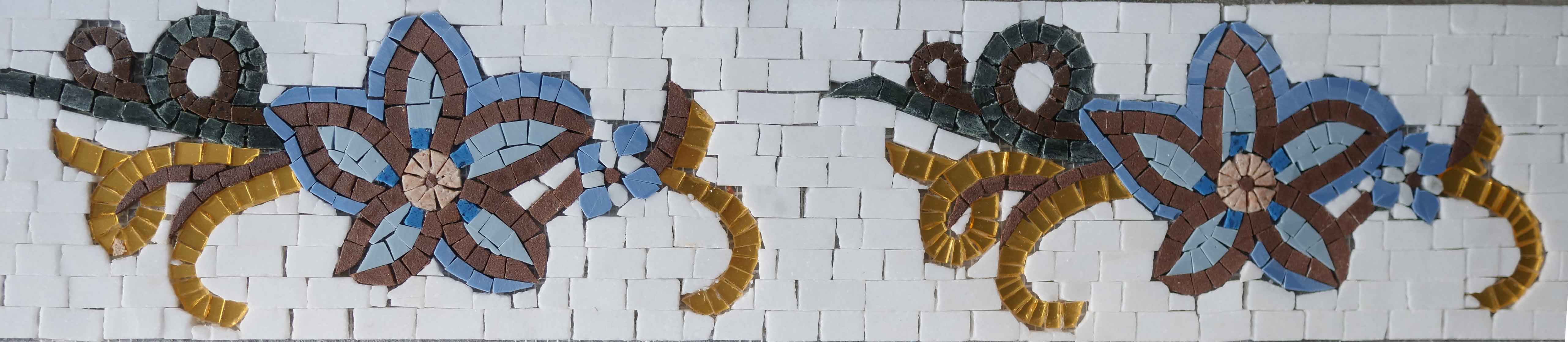 Imagine walking into a room adorned with this captivating mosaic border; the delicate posy flowers create a warm and inviting atmosphere, while the shimmering gold accents catch the light, creating a mesmerizing effect. Whether you’re looking to enhance your living room, bedroom, or any other space, this border is versatile enough to complement a variety of interior styles, from modern to classic.