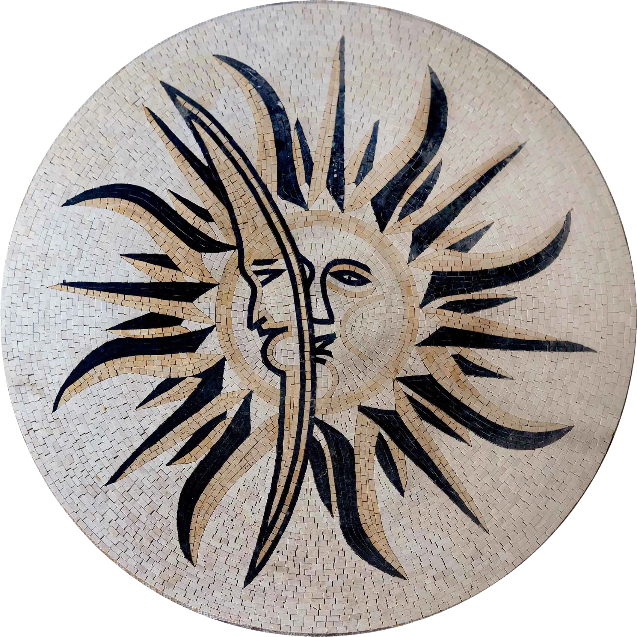 Ideal for art enthusiasts and home decorators alike, this mosaic medallion is not just a decoration, but a statement piece that embodies the balance of nature and artistry. Transform your environment and bask in the soothing energy of this exquisite Sun & Moon design, a perfect reflection of harmony and style. Perfect for gifting or as a personal treasure, the "Sun & Moon - Mosaic Medallion" is sure to leave a lasting impression wherever it graces your space.