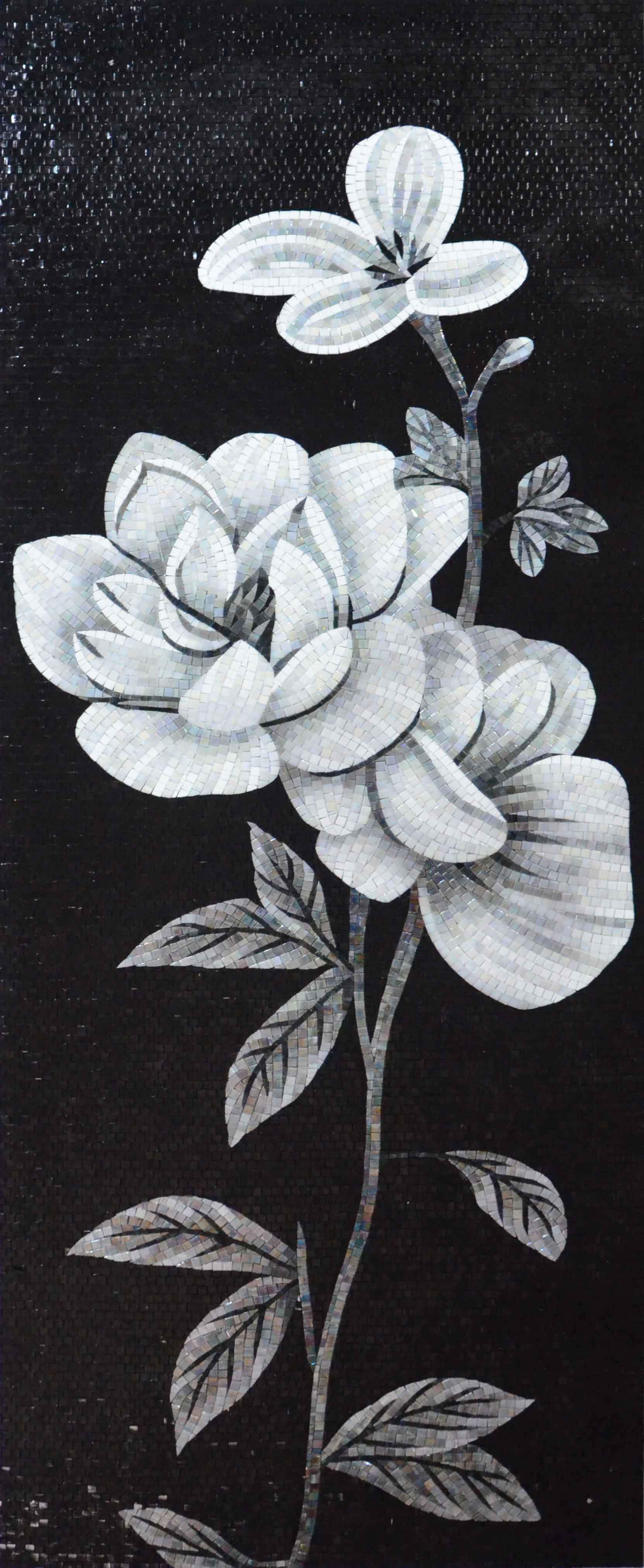 The monochrome palette of this mosaic flower transcends traditional decor, serving as a stunning focal point for any space. Its intricate design reflects the various shades of life’s experiences, evoking emotions and memories through its elegant representation. Each piece of glass mosaic tessera is carefully chosen and arranged to ensure that the final artwork dazzles and delights, adding a unique touch to your home.