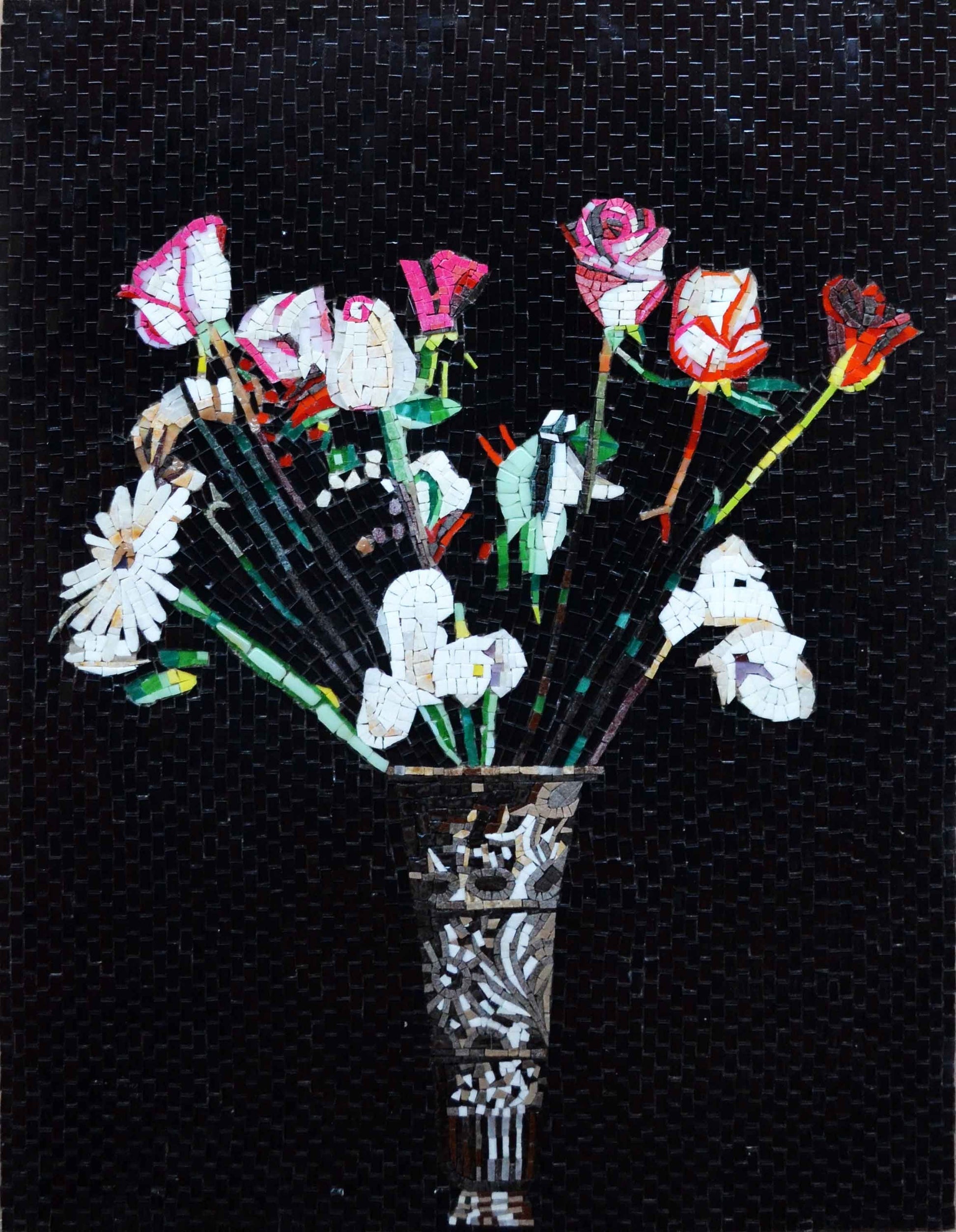 Enhance the style of your home and envelop yourself in the charm of flowers with our "Mosaic Art - Flowers in a Vase." Discover the beauty and expression that this artwork brings, inviting the essence of nature to brighten your everyday life.