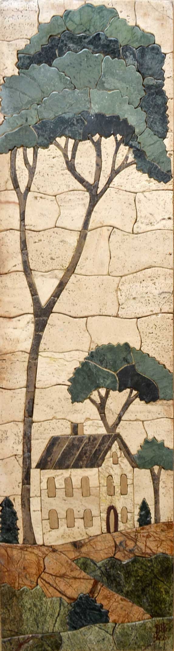 Designed for those who appreciate craftsmanship and artistry, this mosaic not only serves as a decorative element but also as a timeless statement piece that honors the beauty of nature. With its intricate details and warm color palette, the "House In The Woods" mosaic fits seamlessly into various decor styles, from rustic to contemporary.
