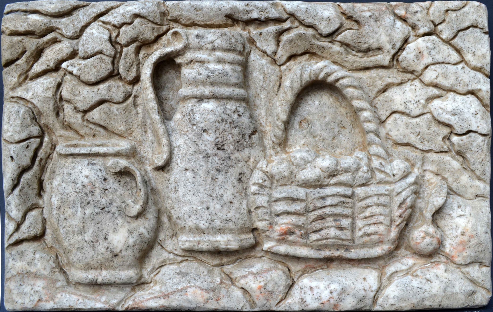 At the heart of this mosaic is an abstract depiction of ancient jugs and a straw basket, set against a softly muted background. The low-saturated chalk tones create a harmonious blend that will complement a variety of interior styles, particularly vintage and rustic themes. Each element in this design tells a story, inviting you to embrace a sense of nostalgia as it seamlessly integrates into your living environment.