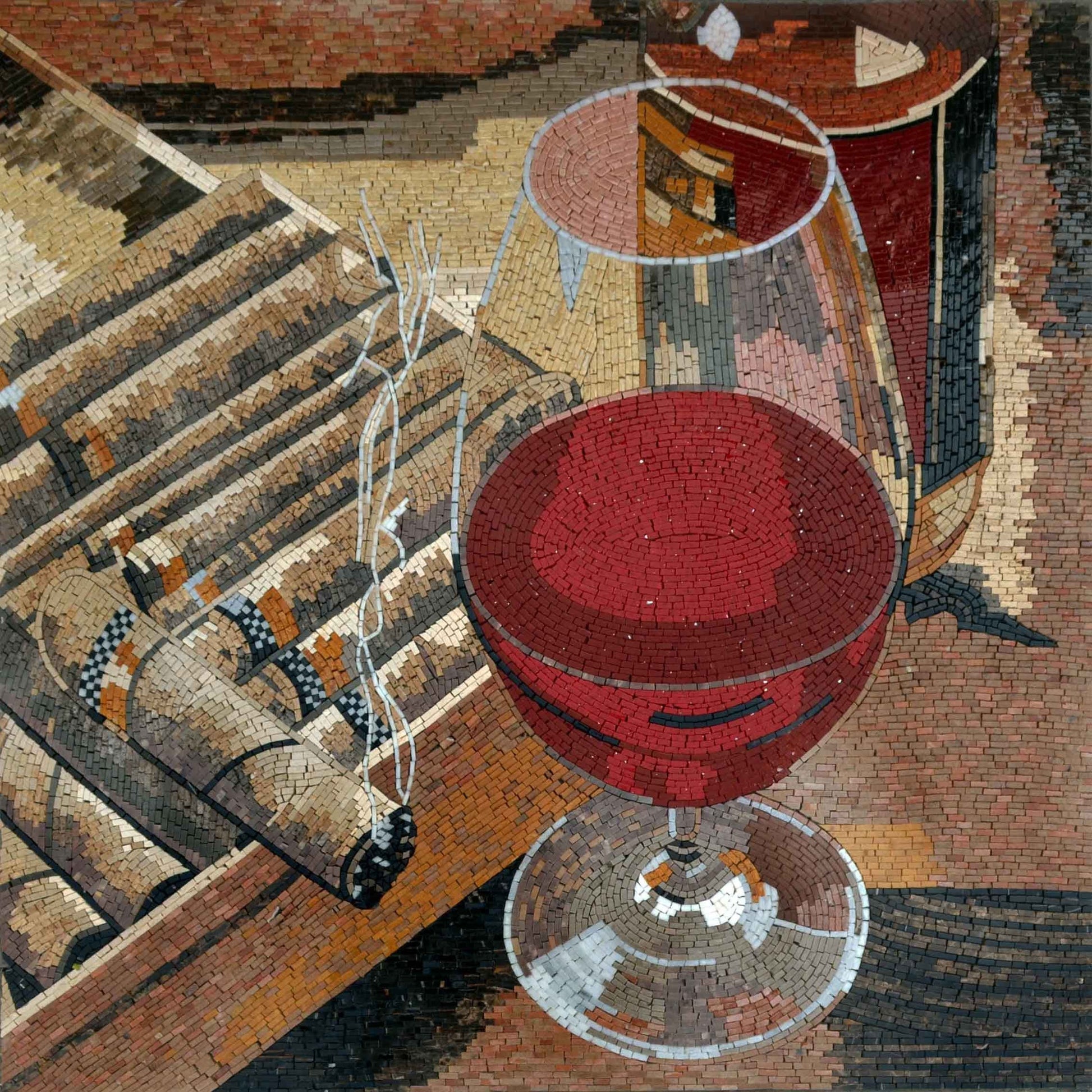 There is nothing better than a few Cuban cigars and a glass of wine to add a sense of luxury. This handmade mosaic clearly does so. It composed of all natural marbles and can be used as mural decoration on the wall of your office restaurant or bar.