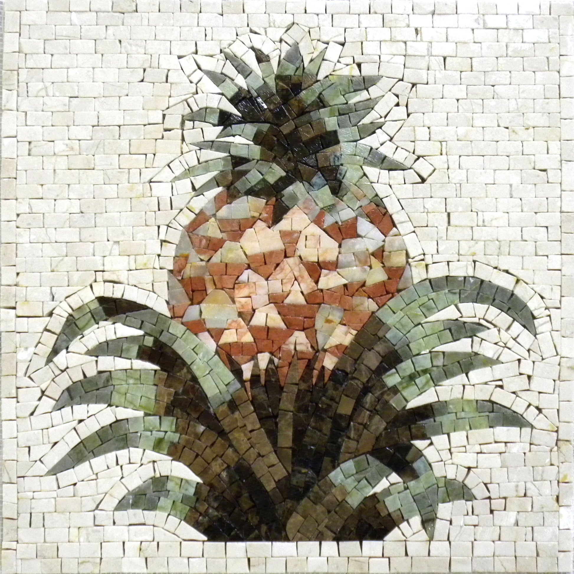 Crafted with premium stone tiles, our mosaic backsplash boasts a captivating design that creates the illusion of depth and dimension, making the pineapple motif truly come to life. The intricate shading and rich hues are meticulously designed to catch the light beautifully, offering a feast for the eyes every time you step into your kitchen. This artistic portrayal of the pineapple is more than just a decor item; it's a celebration of tropical beauty and culinary creativity.