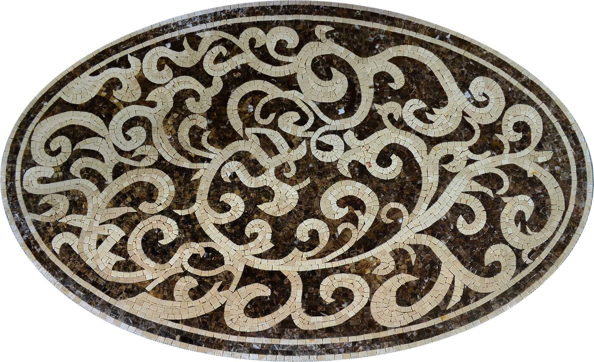 Bring your vision to life with the Botanical Oval Floor Mosaic or Tabletop or Wall Mural - Livia, where style meets sophistication. Transform your home with this elegant piece and let nature’s beauty inspire and rejuvenate your living environment. Embrace the art of home decor and showcase your individuality with the Livia mosaic — a timeless addition to your cherished space.