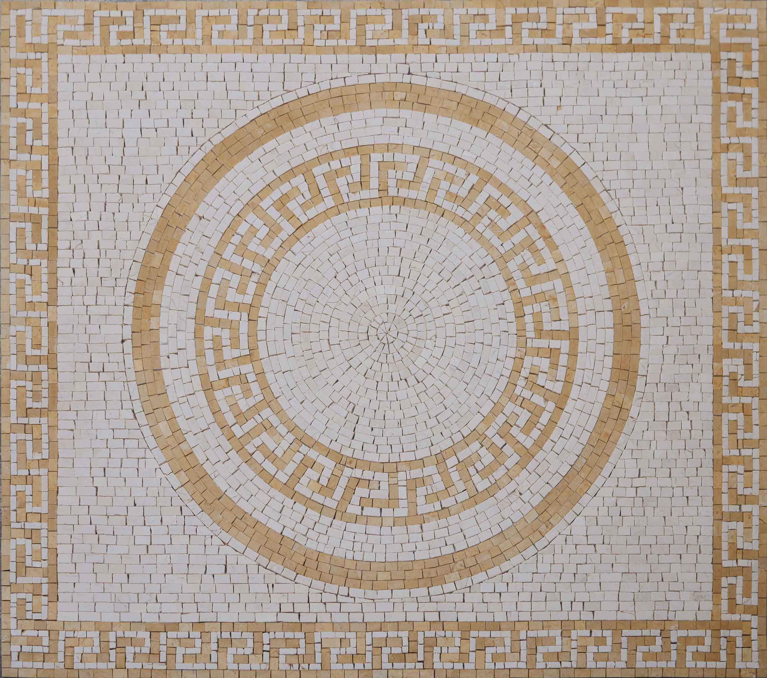 The intricate design is enhanced by the iconic Versace mosaic pattern, which lends an air of sophistication and luxury to the artwork. Whether you're looking to adorn a wall with a striking focal point or elevate the charm of your flooring, Briseis serves as the perfect accent, inviting admiration and conversation.