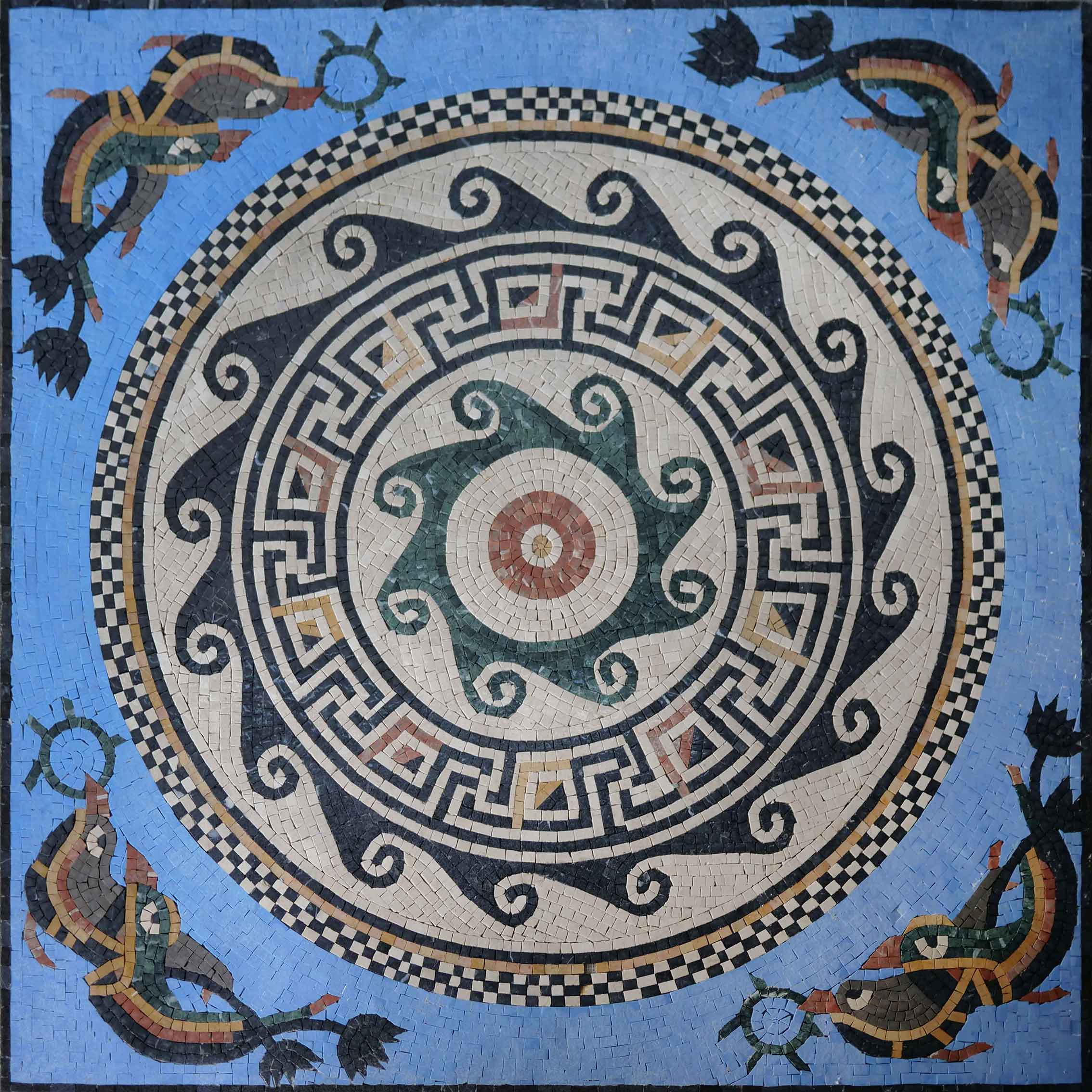 Versatile in its appeal, the Mosaic Mural - Archaic Fish is perfect for both interior and exterior settings. Whether you're looking to create a serene focal point in your living room, add a splash of color to your garden, or make a statement in your entryway, this mosaic mural will deliver. Its contemporary yet timeless design makes it an ideal choice for a variety of decorating styles, from modern to rustic, coastal to eclectic.