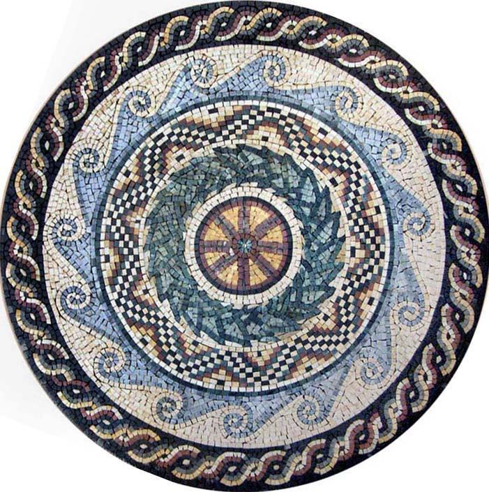Our Juno multi-patterned art mosaic is a real standout. Featuring a brick wheeled center the medallion combines Romanesque botanical wave and guilloche patterns. Craft a unique stone backsplash in your kitchen or create a stunning centerpiece for a decorative tile floor - the possibilities are endless with mosaic artwork.