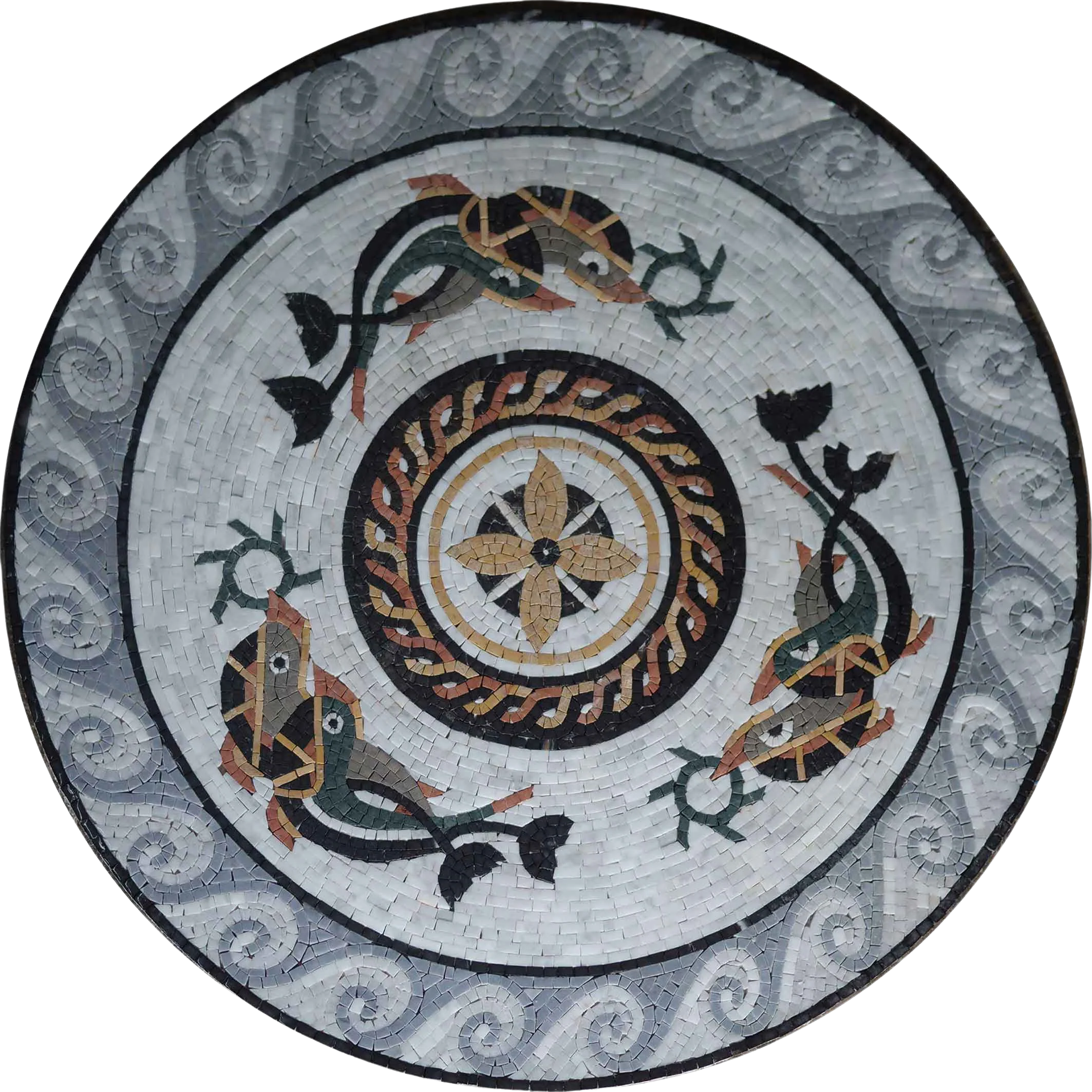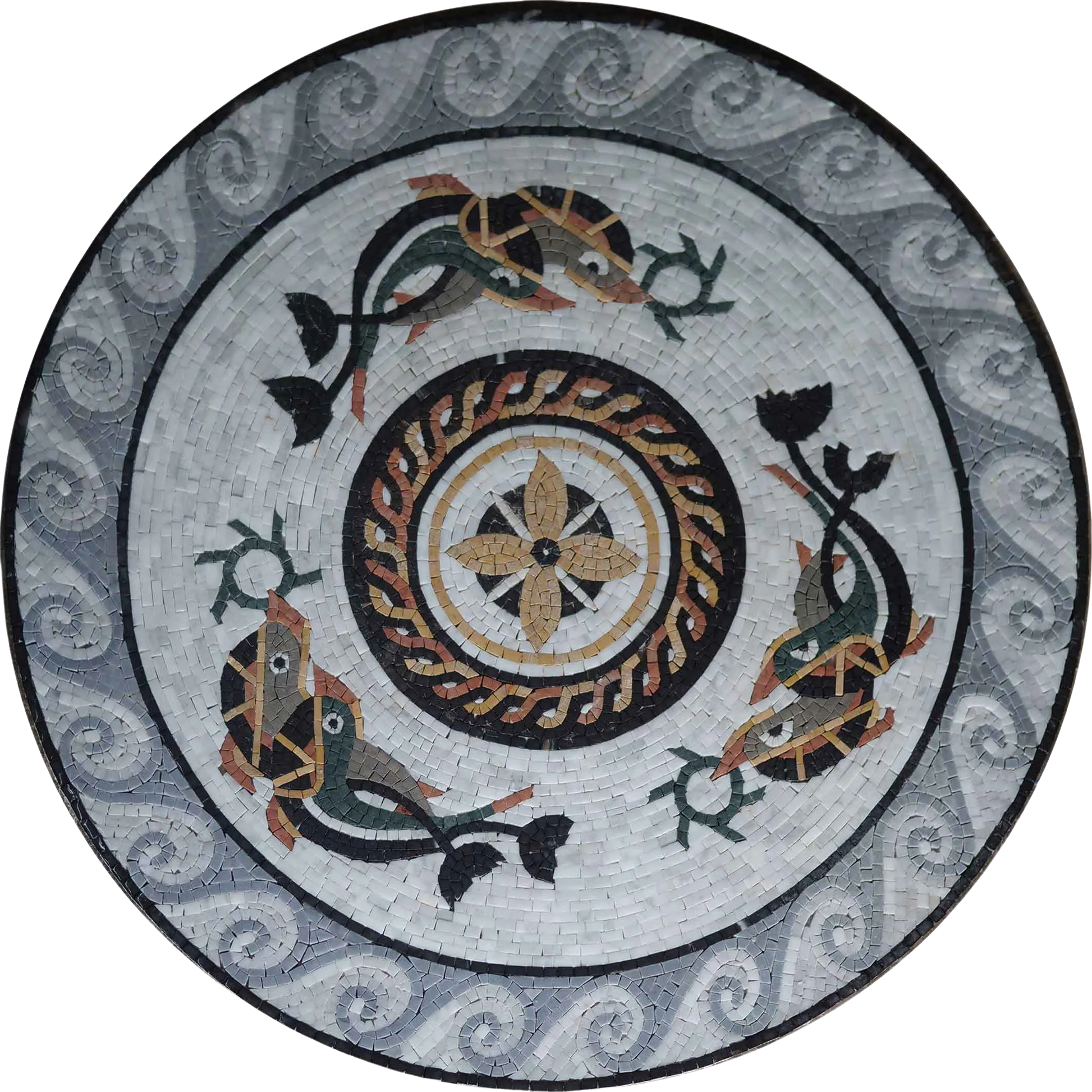 Versatile in its use, this mosaic medallion can serve as a breathtaking tabletop centerpiece, adding a touch of sophistication to your dining or living area. Alternatively, it can be mounted on the wall or set into the floor, making it a versatile option for enhancing any space. Whether you choose to showcase it in a sunroom, entryway, or even a bathroom, its serene aquatic theme will transport you to a calming underwater world every time you admire it.