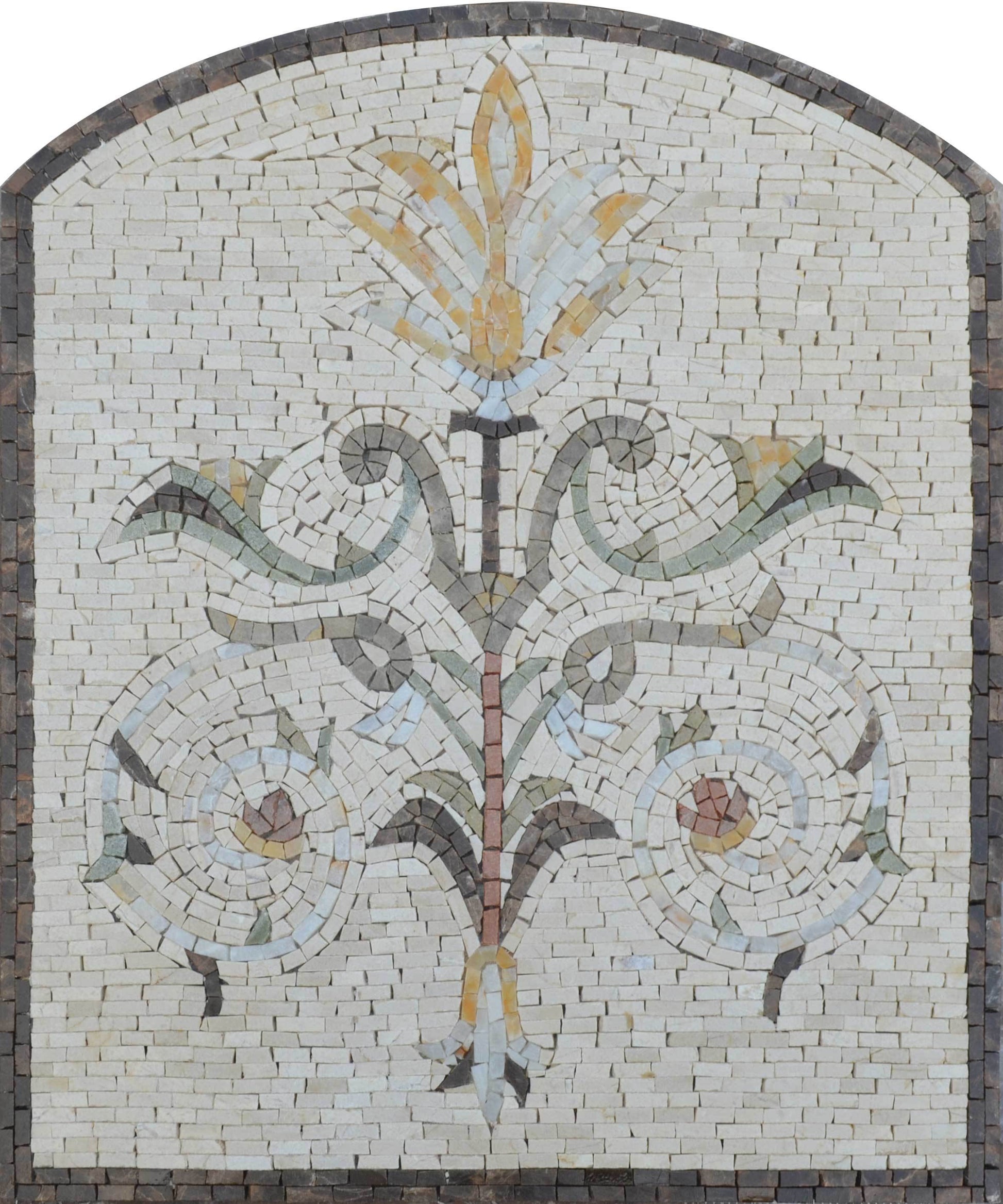 The Noble II features a beautifully elevated floral design, thoughtfully crafted in subtle colors that evoke a sense of calm and serenity. Whether you choose to adorn your walls or enhance your backyard ambiance, this mosaic serves as a perfect focal point that invites admiration and inspires conversation.