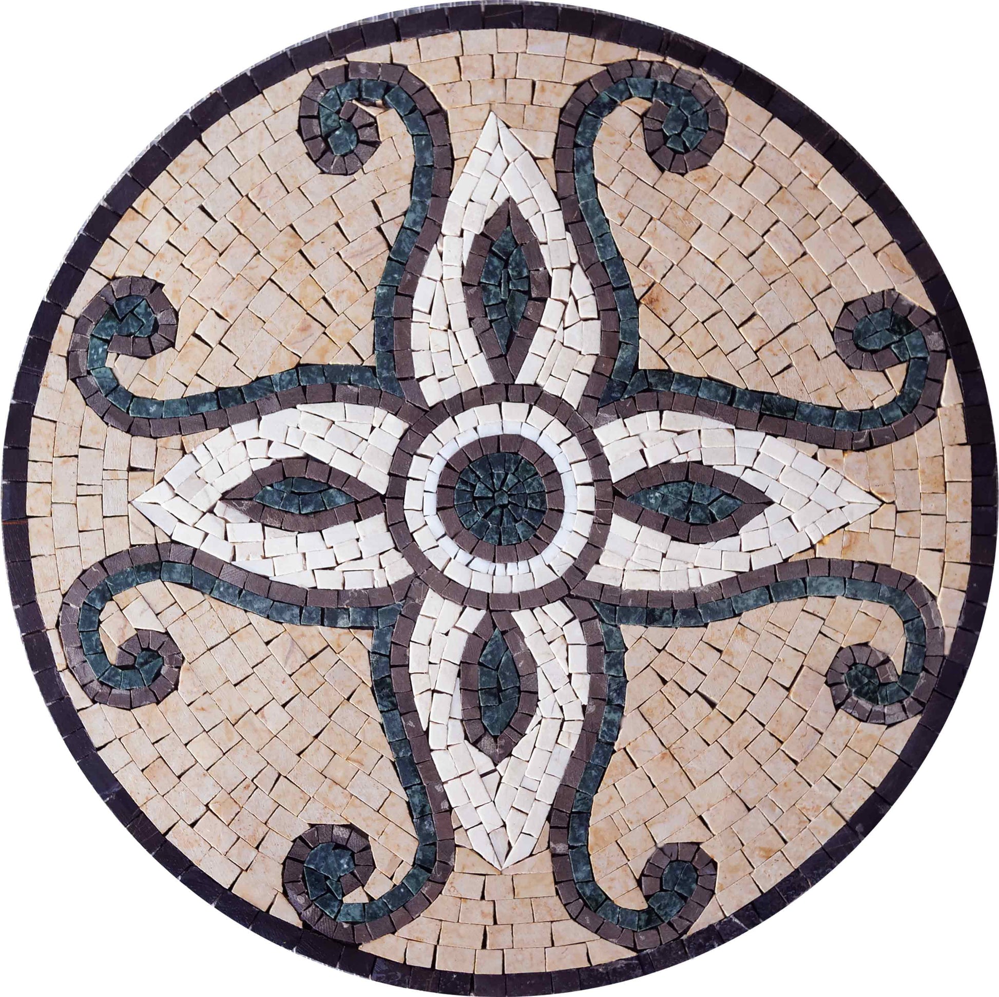 Enhance your natural stone floor with this eye-catching Bleu de Prusse medallion. Featuring a stylized blossom in Prussian blue white and gray the warm neutral background colors of this mosaic design complement other marble tiles for a seamless wall or floor installation. This mosaic medallion will beautify and add value to your home.