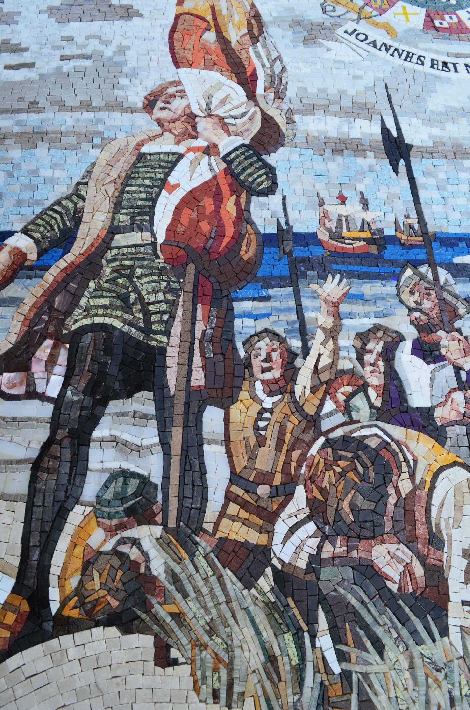 Born in the Republic of Genoa, Columbus embarked on four monumental voyages under the patronage of the Catholic Monarchs of Spain. His expeditions opened up the Americas to European exploration and colonization, marking a pivotal moment in history. This mosaic art piece encapsulates that adventurous spirit and the rich historical significance surrounding Columbus's legacy.