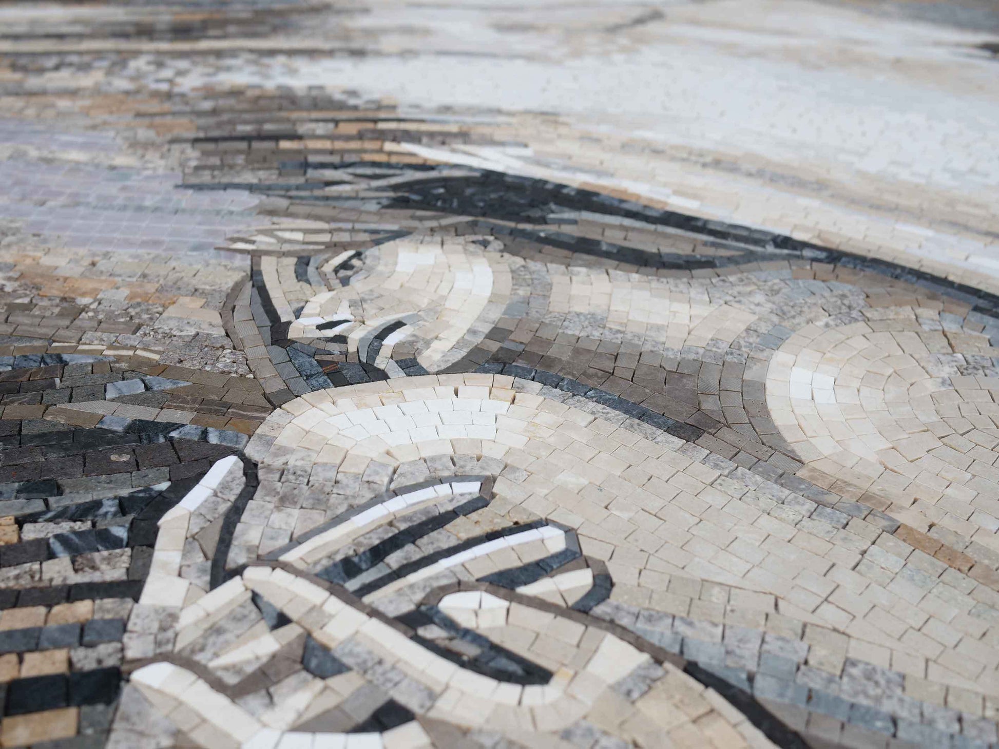 Handcrafted with meticulous attention to detail, each piece is made from high-quality marble stones, ensuring that every mosaic tells its own unique story through its natural variations. The warm, neutral colors are thoughtfully chosen to complement any decor, making this artwork a versatile addition to both indoor and outdoor environments.