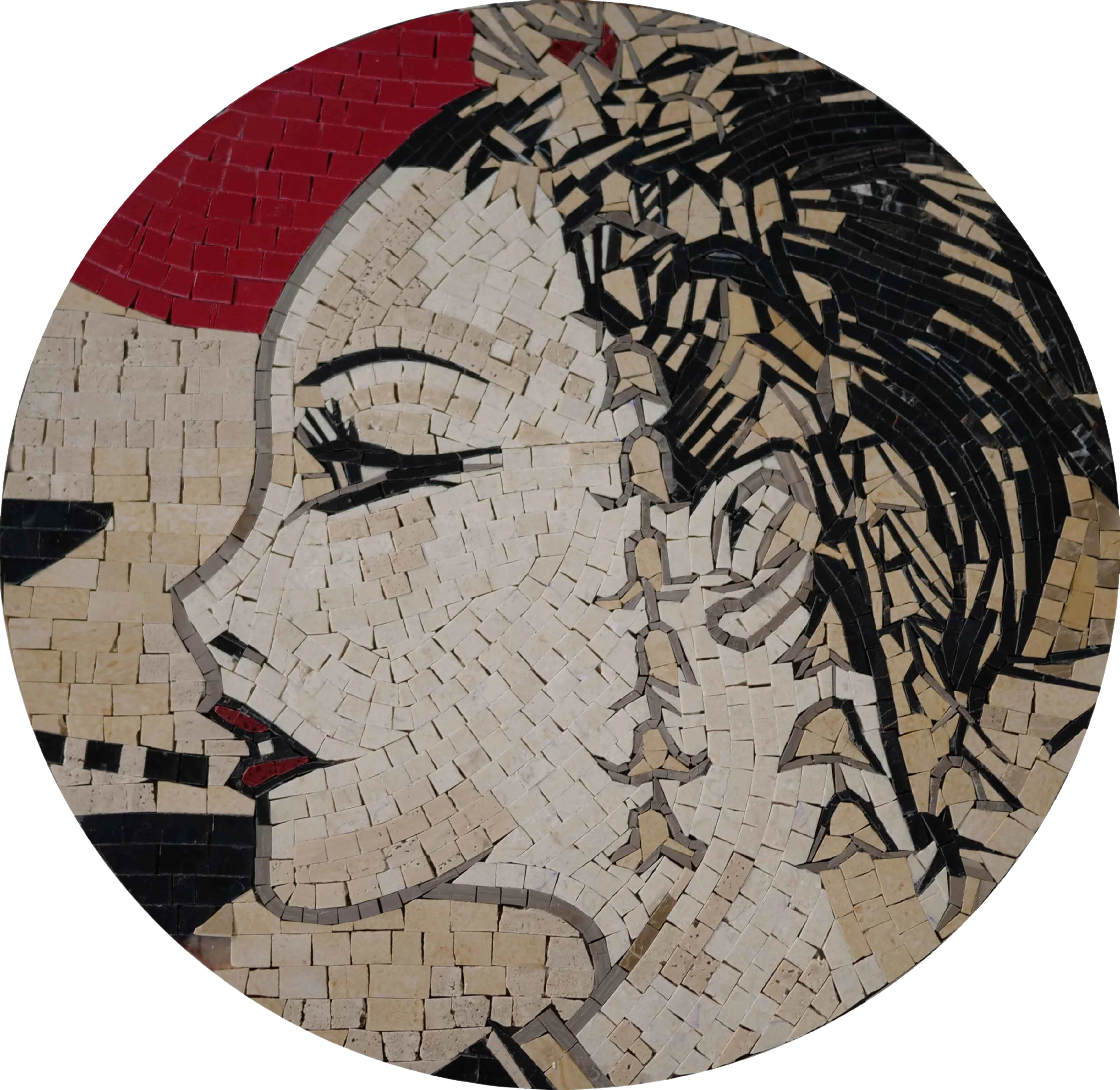 Designed for easy installation, you can effortlessly adorn any wall with this piece. Whether you prefer to showcase it in a modern, minimalist space or a more eclectic setting, the versatility of the "Mosaic Woman - Mosaic Medallion" allows it to fit beautifully in any context.