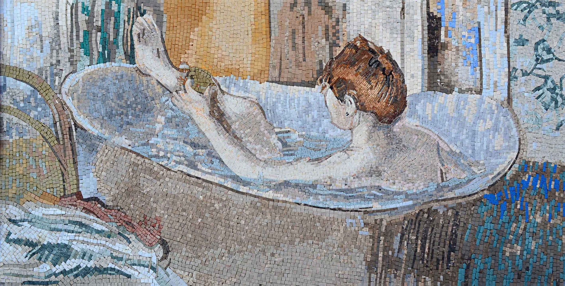 This marvelous hand-made mosaic mural is a reproduction of well-known oil painting Blue Room by Pablo Picasso. Available in our Inventory. Blue Room Mosaic is an exceptional piece of art that invites wonder and appreciation to your walls!