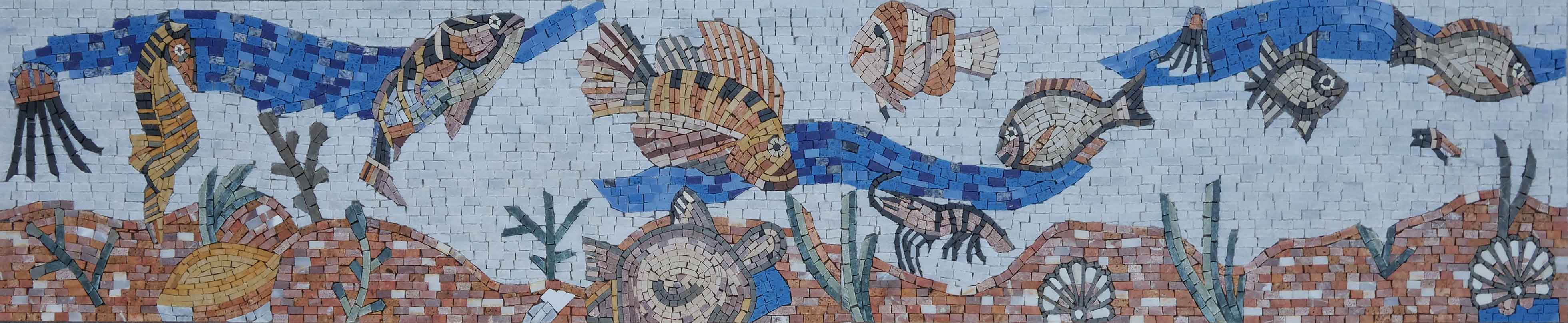 The Creatures of the Blue Sea Mosaic is not just a decoration; it is a statement of sophistication and a work of art that enhances your environment. Ideal for use in bathrooms, pools, or any space where you want to evoke the soothing vibes of the ocean, this mosaic adds a touch of art deco flair that resonates with nature's beauty.