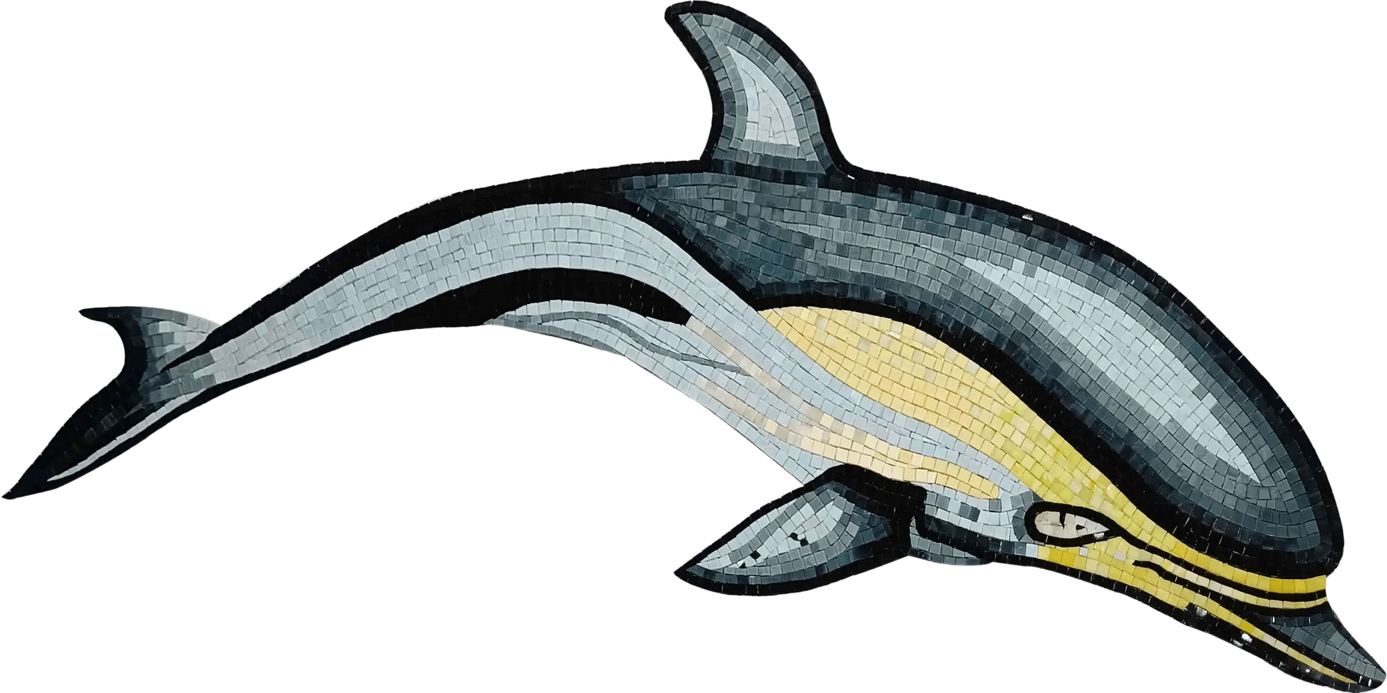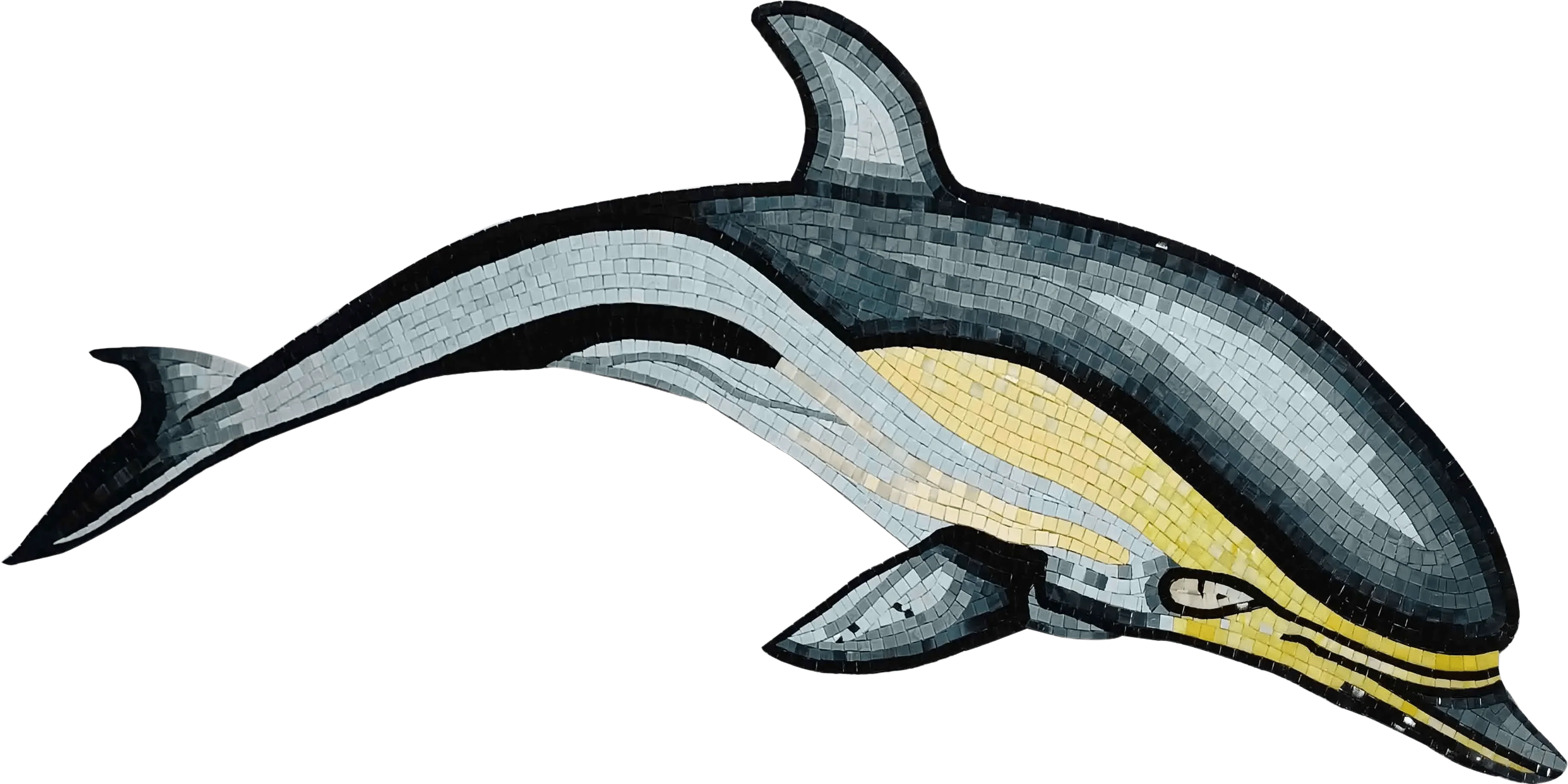 Handcrafted with meticulous attention to detail, each mosaic piece is carefully arranged to highlight the dolphin's fluid motion and majestic presence. The artistry involved in this piece not only emphasizes the natural beauty of the dolphin but also reflects the skill and passion of the artisan behind it. The combination of light and shadow adds depth and dimension, making this glass mosaic art a focal point in any room.