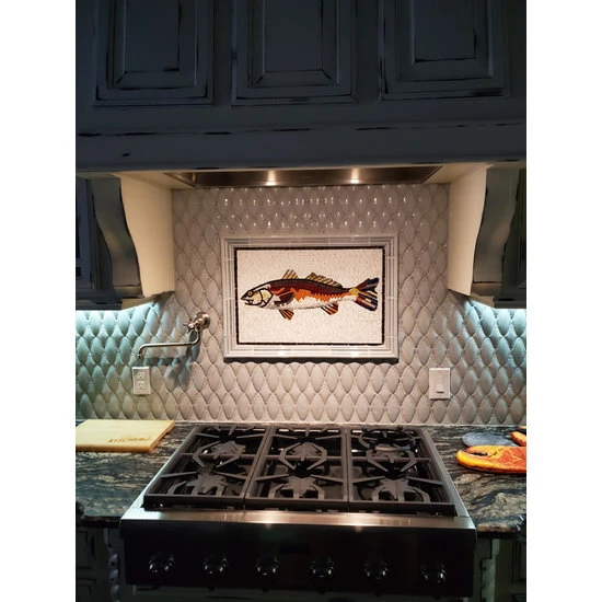 Not only is this mosaic a beautiful decorative piece, but it also reflects a love for marine life, making it a perfect gift for fishing enthusiasts, ocean lovers, or anyone who appreciates the art of handcrafted creations. Whether you’re looking to enhance your own space or searching for a thoughtful present, the Rosso Jumping Mullet is sure to delight.