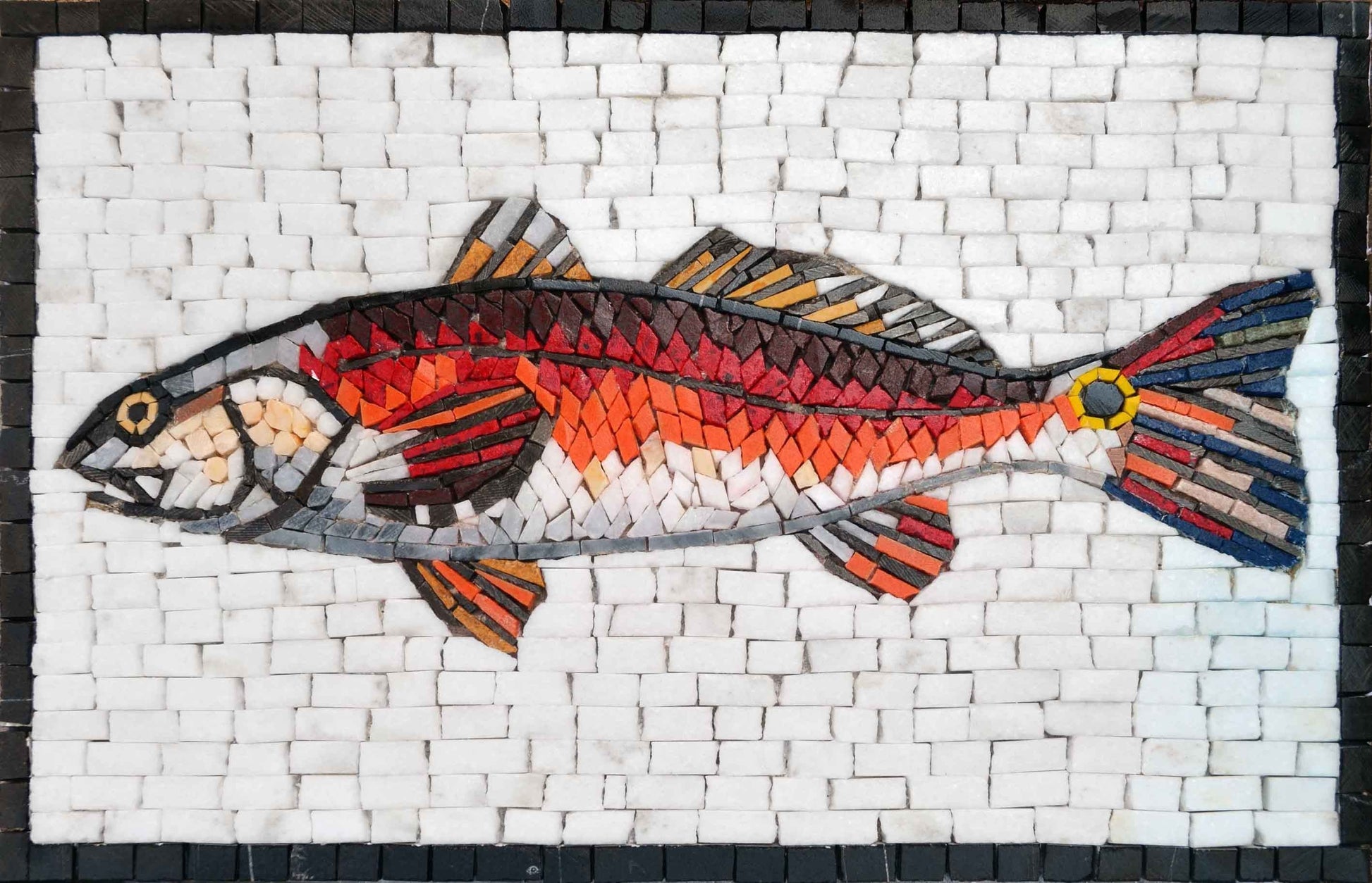 Embrace the allure of the sea and elevate your decor with the "Mosaic Art - Rosso Jumping Mullet." Each artwork is a testament to skilled craftsmanship and a celebration of nature's beauty, allowing you to bring a piece of the ocean's charm into your home. Make it a centerpiece of your decor and enjoy the captivating artistry that only a handcrafted mosaic can provide.