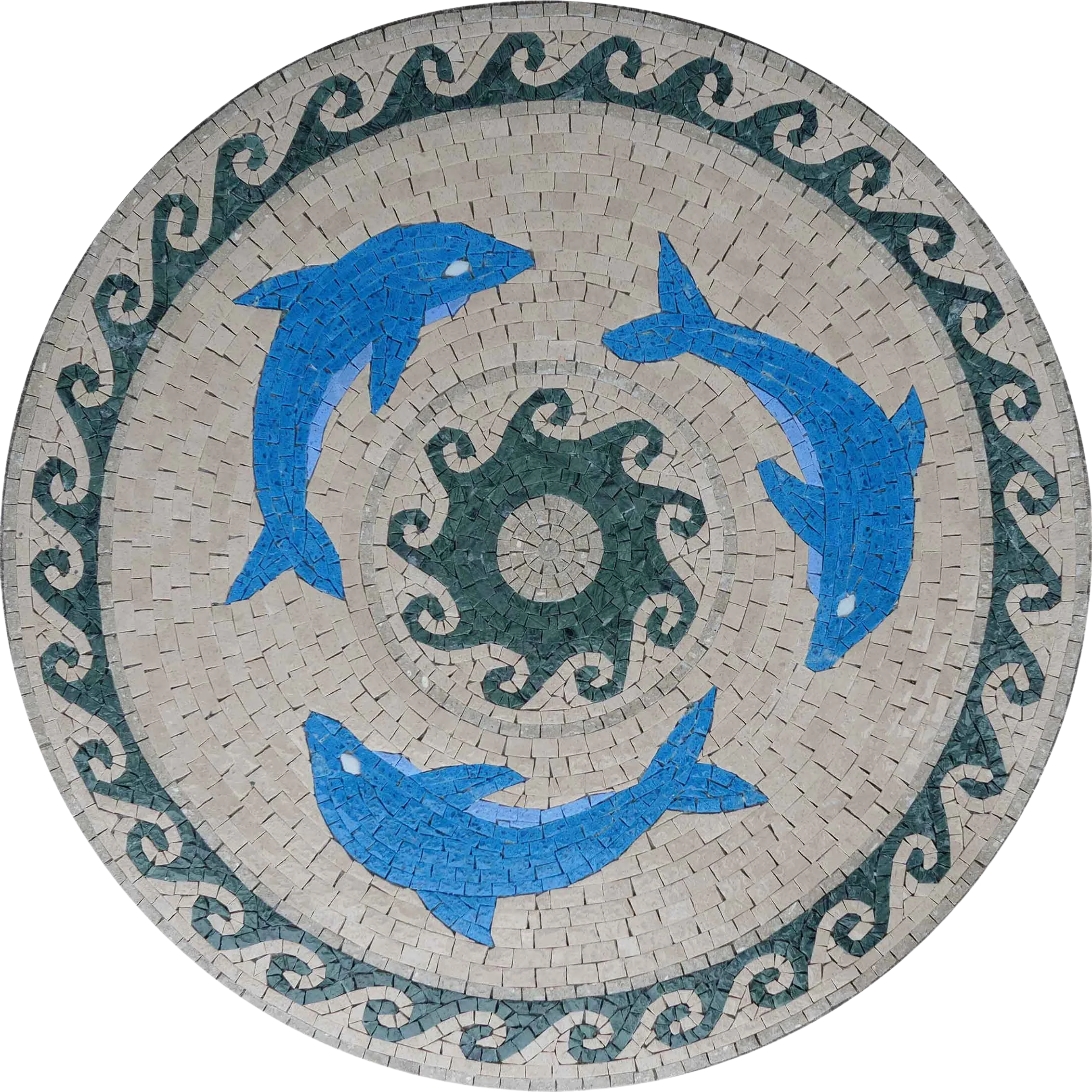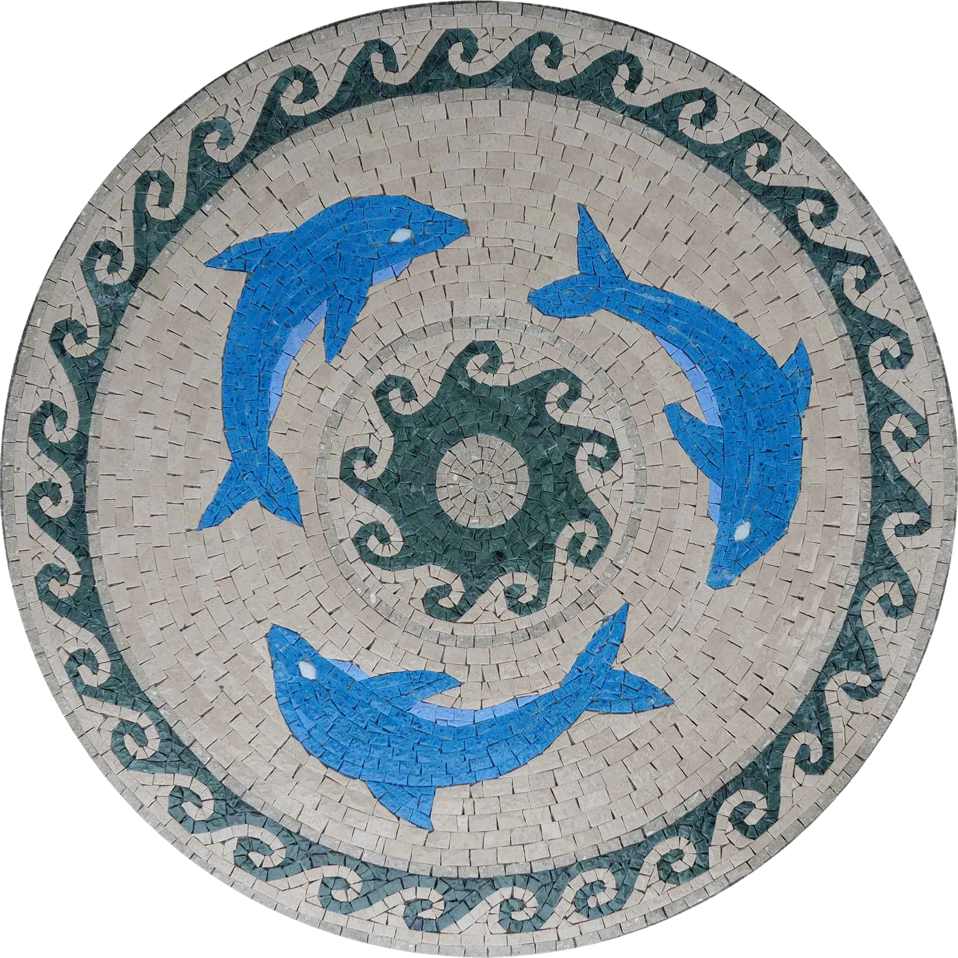 Bring home this stunning mosaic today and let the elegance of dolphins and the vibrant waves transform your surroundings into a serene coastal getaway. Whether as a gift for a loved one or a special treat for yourself, this exquisite artwork is destined to impress and inspire. Dive into the beauty of the ocean and enhance your environment with our "Mosaic Artwork - Dolphins Swimming."