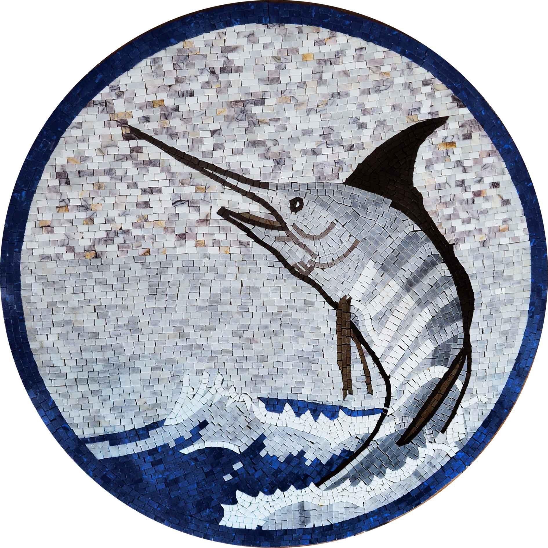 Enhance your home or commercial space with the allure of the ocean through our Sword Fish Mosaic Marble Medallion. Perfect as a statement piece or as part of a larger mosaic display, this medallion not only captivates the eye but also adds a sophisticated touch that speaks to your style and appreciation for artisanal craftsmanship. Transform your environment today with this remarkable work of art!