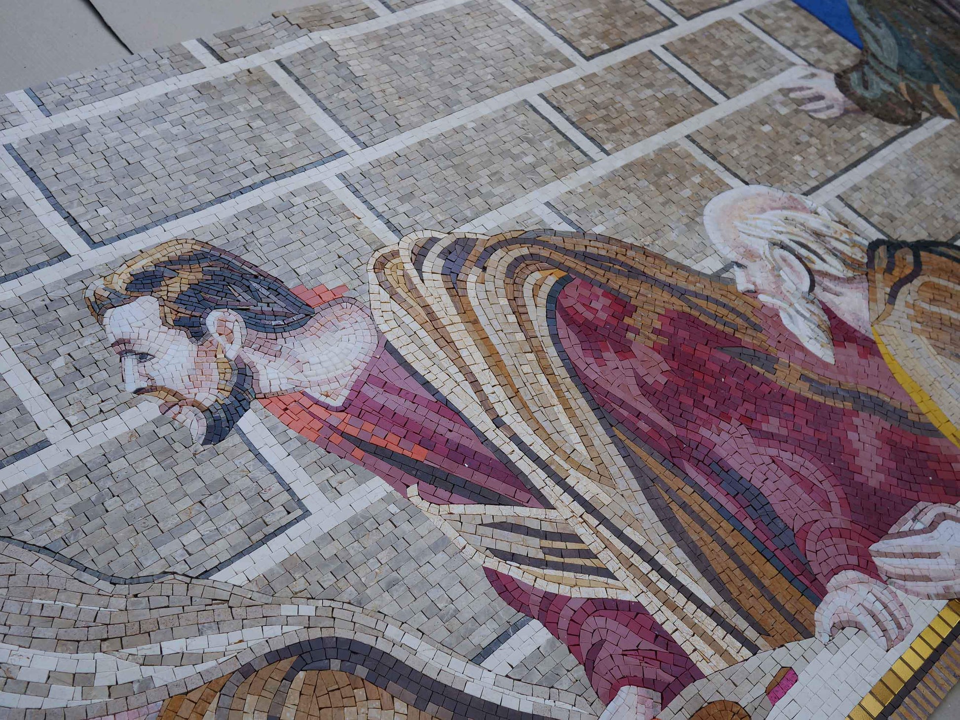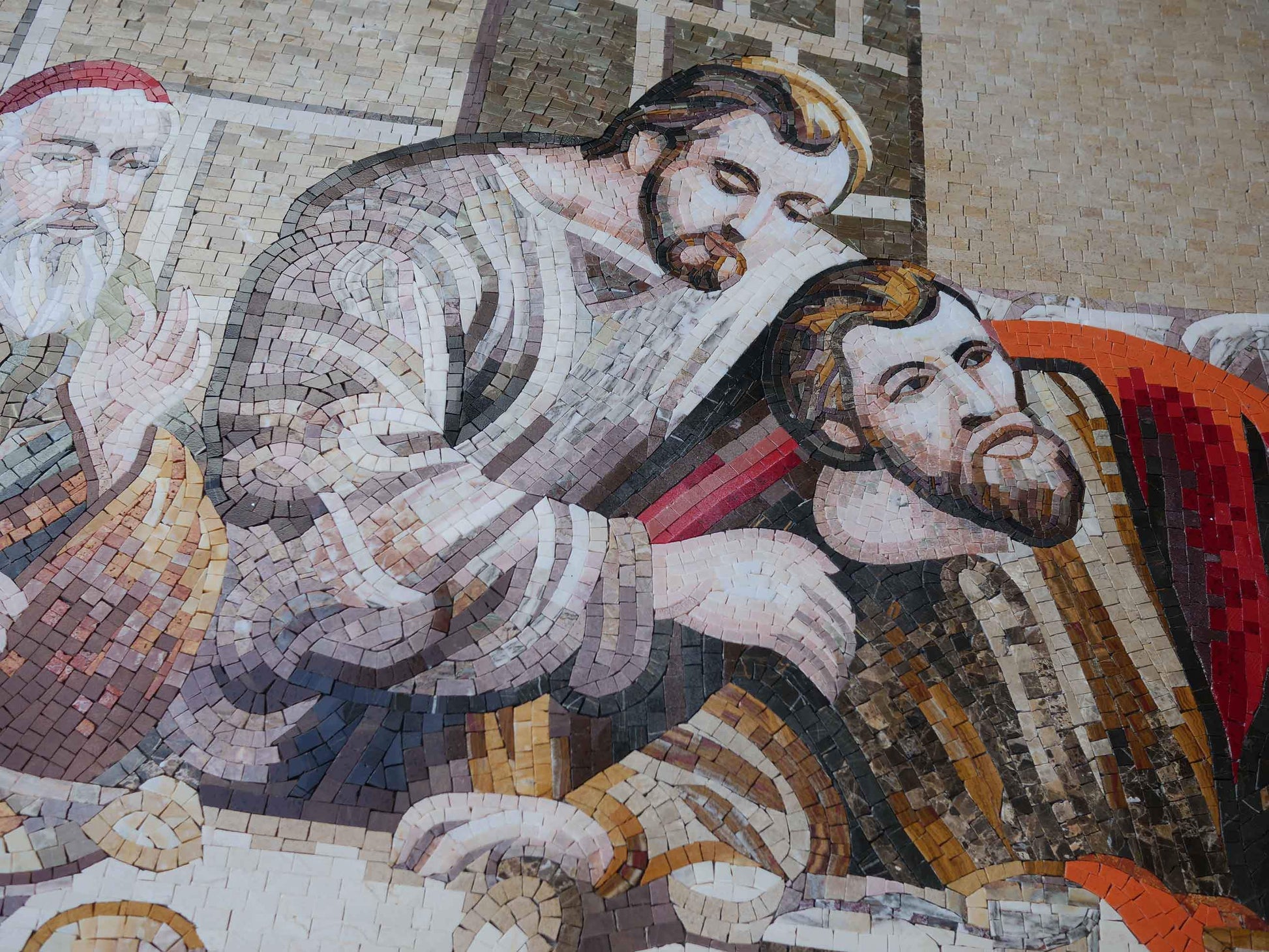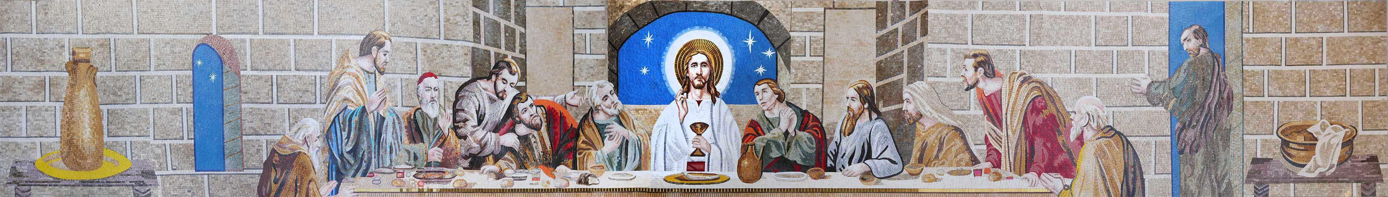 At the heart of this remarkable piece is a focus on the individualism of Jesus Christ amidst his apostles, highlighting the profound significance of the moment. This mosaic serves as a beautiful reminder of faith, community, and art's enduring ability to convey deep messages.
