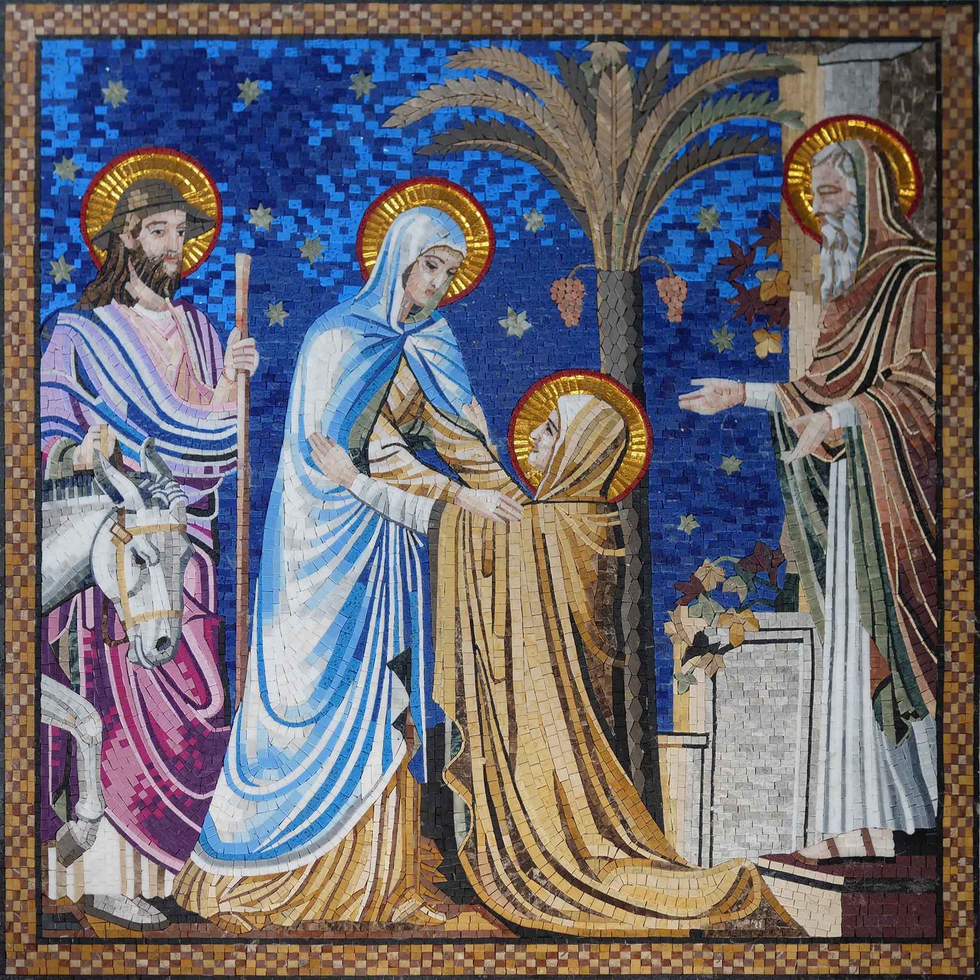 Versatile in its design, this mosaic can easily be set up on any wall, making it a perfect addition to your home, office, or place of worship. Whether you're looking to enrich your living space with religious significance or simply to appreciate the artistry, the Mary and Saints - Mosaic Artwork serves as a timeless testament to faith and artistic expression.