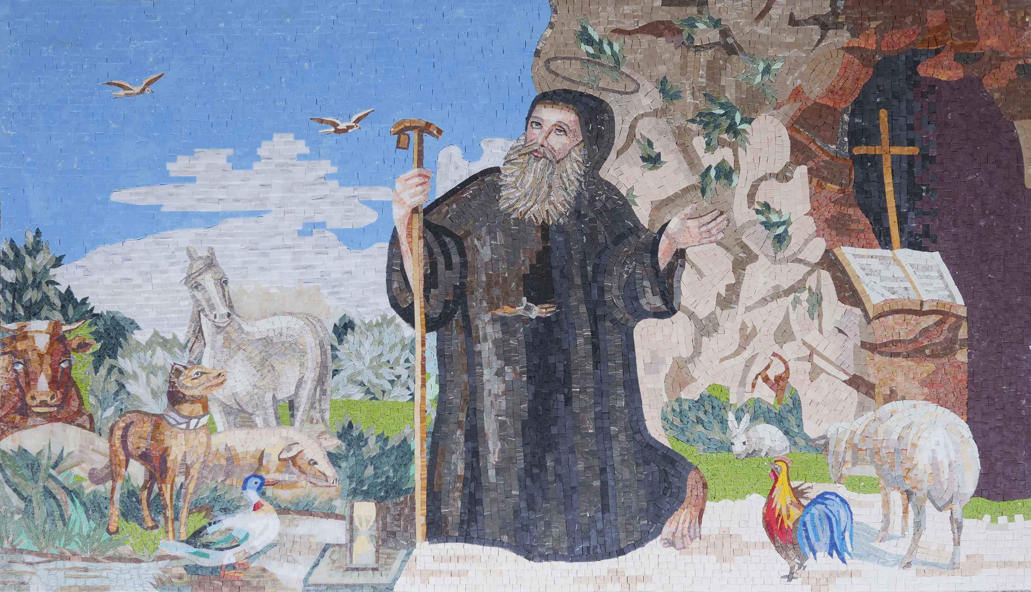 Add a touch of spirituality and elegance to your environment with this remarkable piece of art. The "Saint Antonios Religious Mosaic Mural" is not just an aesthetic enhancement; it serves as a constant reminder of compassion towards animals and the importance of caring for those who depend on us. Whether for personal enjoyment or as a thoughtful gift, this mosaic mural is sure to impress and resonate with anyone who values art and faith.