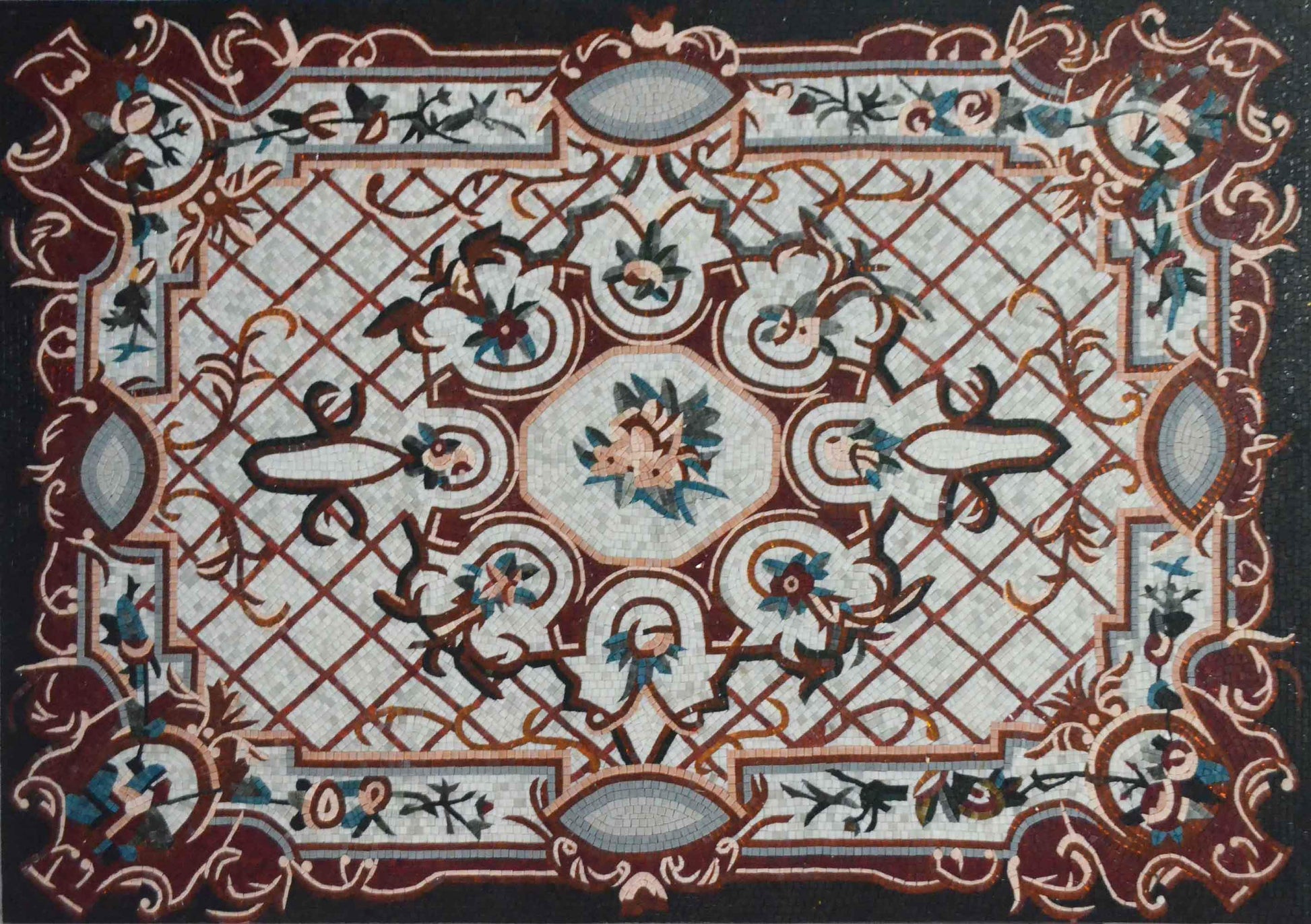 Handmade by skilled artisans, each carpet is a unique creation that reflects exceptional craftsmanship. The intricate design showcases vibrant floral patterns, adding a touch of elegance and sophistication to any room. Whether placed in a cozy living room, under a dining table, or as a decorative piece in an entryway, this glass mosaic carpet becomes an eye-catching focal point that elevates your home decor.
