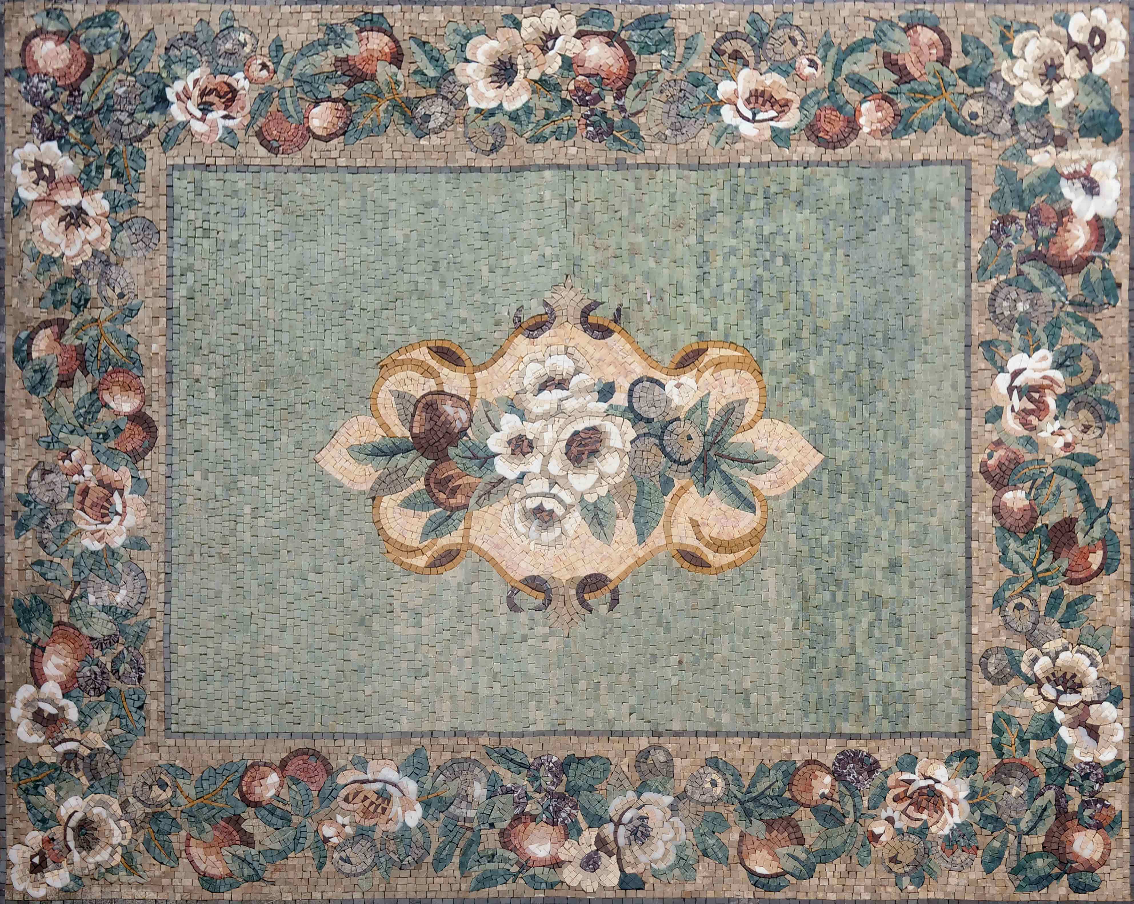 Introducing the Exquisite Floral Rug Mosaic – a masterpiece of timeless beauty and elegance that brings a touch of artistry to your living space. This handcrafted mosaic features an intricate floral rug design inspired by classic patterns, blending vibrant petals with delicate geometric motifs. Every detail is a celebration of natural beauty and refined craftsmanship, making this piece a centerpiece in any home.