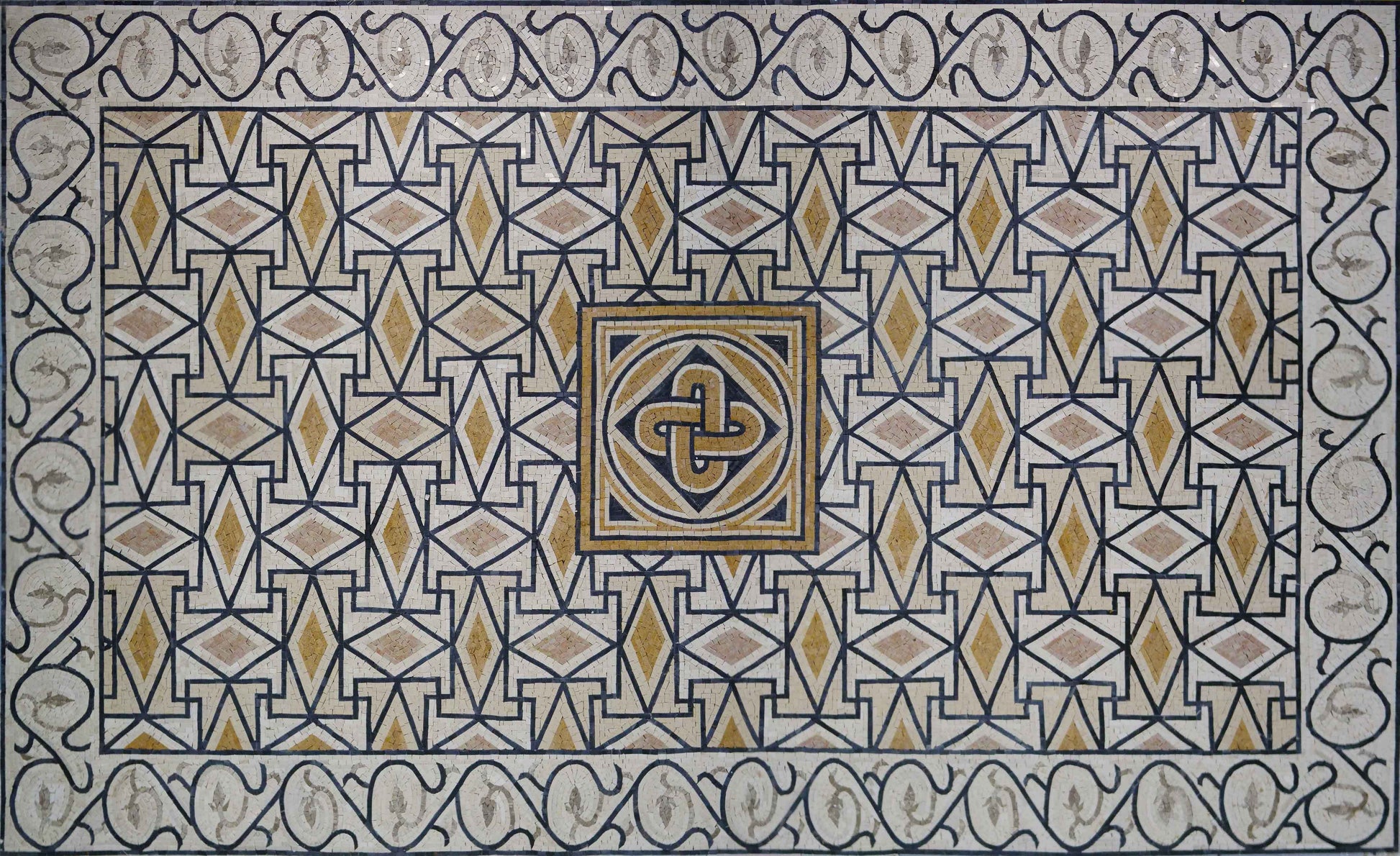 Made from high-quality marble stones, this patterned carpet is not only visually striking but also durable enough for a variety of settings. The neutral color palette ensures that it seamlessly integrates into your existing décor, enhancing the beauty of your floors whether you're placing it indoors or outdoors. Imagine this masterpiece anchoring your living room, adding charm to your patio, or serving as a stunning focal point in your entryway.