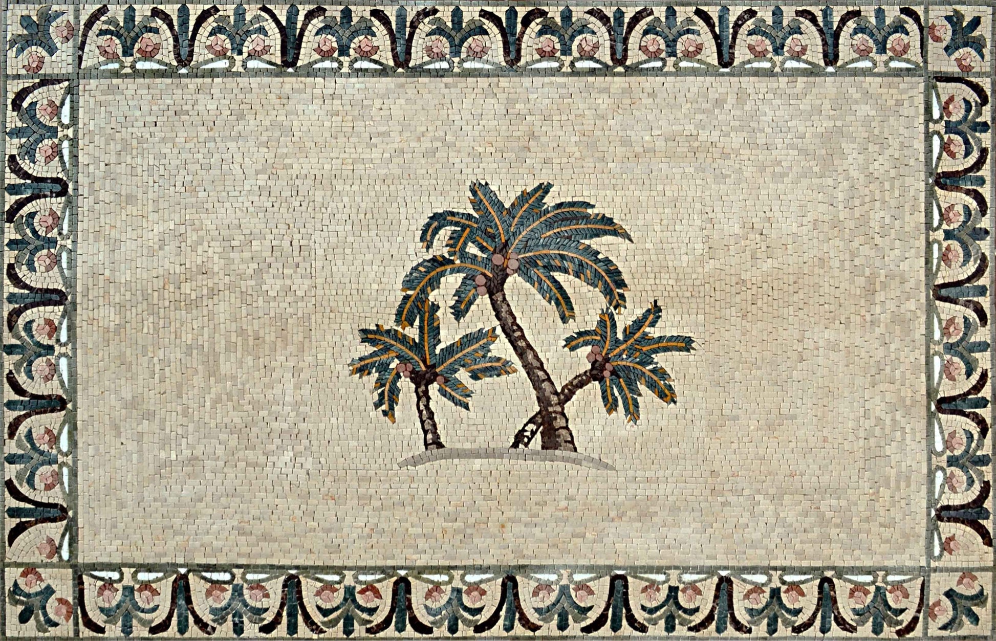 Inspired by the serene landscapes of desert vistas, the "Palm Trees" mosaic tile pattern captures the essence of tranquility and harmony. This design perfectly illustrates palm trees swaying gently in the warm desert breeze, making it an ideal accent for any room that seeks to evoke an atmosphere of relaxation and leisure. Whether you're looking to enhance your living room, bathroom, or kitchen, these handcrafted mosaic tiles will transform any wall or surface into a work of art.