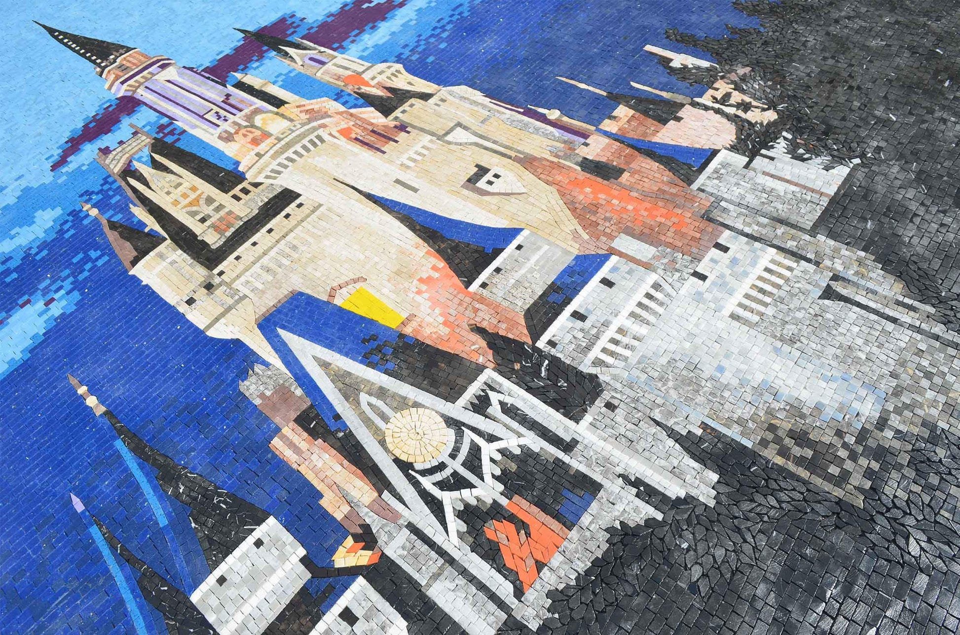 Handcrafted by our talented artists, this mosaic showcases intricate details and vibrant colors that bring the beloved castle to life. The skilled craftsmanship ensures that every piece is unique, making it a one-of-a-kind addition to your home or office decor. The shimmering hues of blue and hints of golden accents mimic the sparkle of starlight, creating a captivating focal point that is sure to draw compliments from friends and family alike.