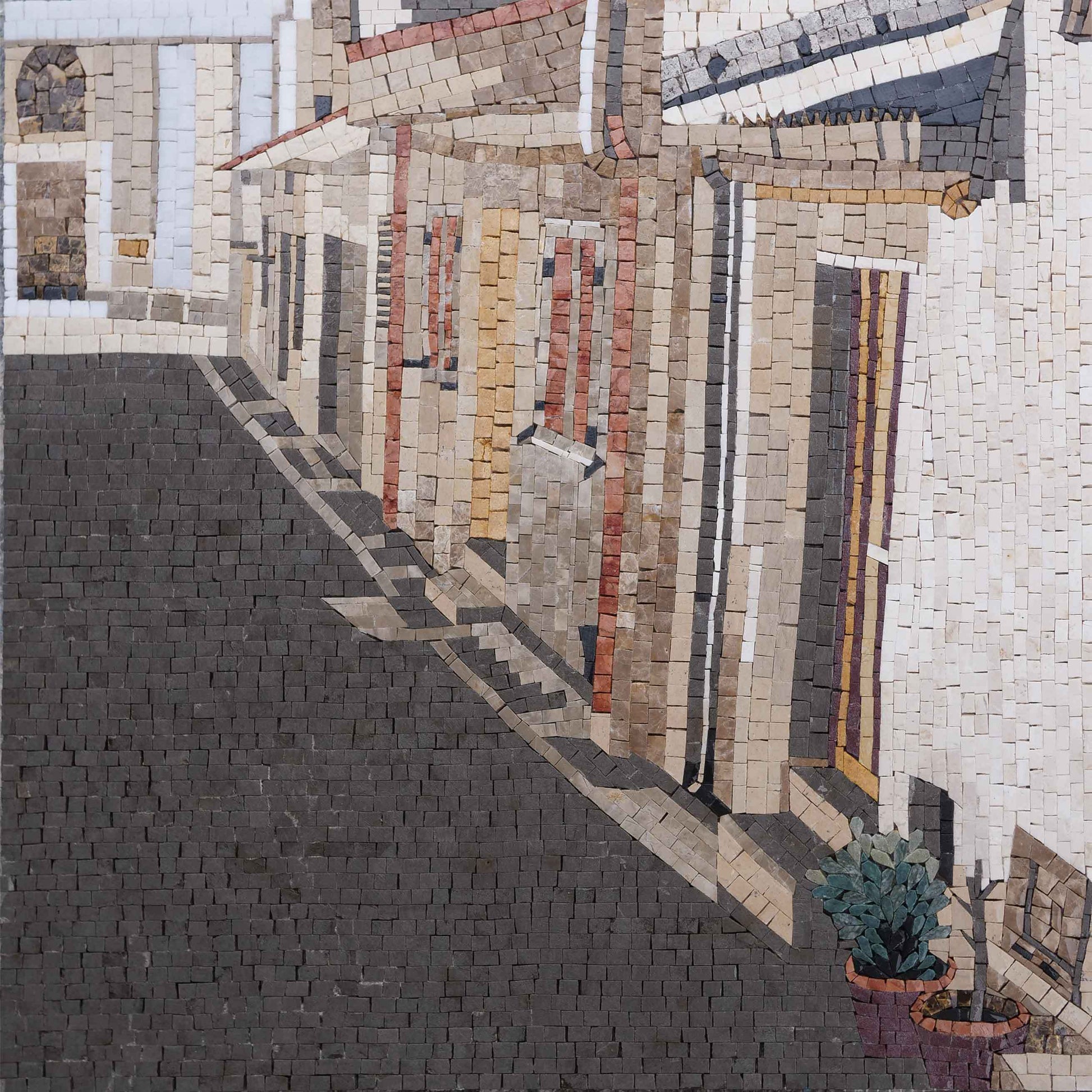 Elevate your environment and create a sanctuary of calmness with this unique art piece, allowing its tranquil beauty to wash over you and enhance your daily experience. Make the City Street Mosaic Artwork a part of your story today and let it inspire moments of peace and appreciation in your life.