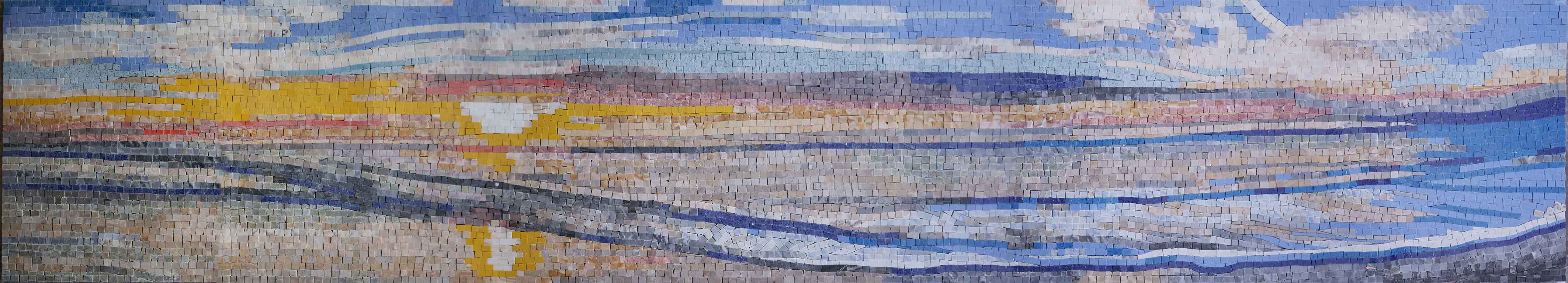 Elevate your surroundings and bask in the beauty of this unique artwork, a true testament to the art of mosaic. Explore the serenity and charm of the shore with every glance at this captivating piece. Indulge in the luxury of hand-crafted artistry and let the "Landscape Mosaic - Sunset On The Shore" become a cherished part of your home decor.